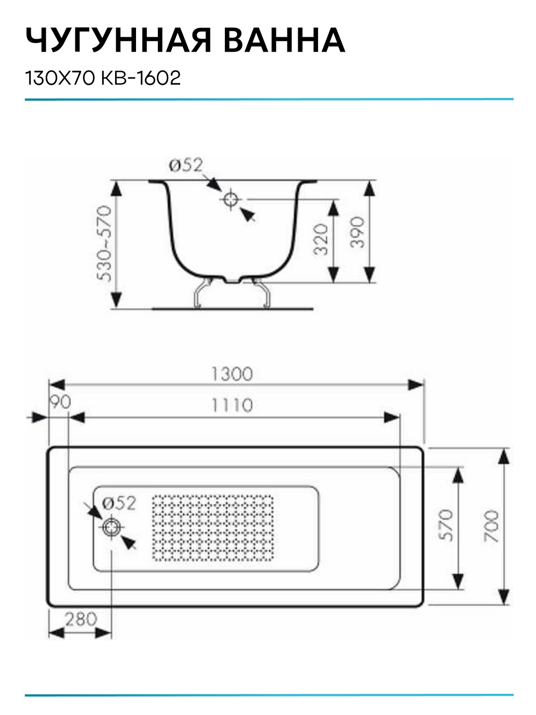 Чугунная ванна Kaiser 130х70 КВ-1602.