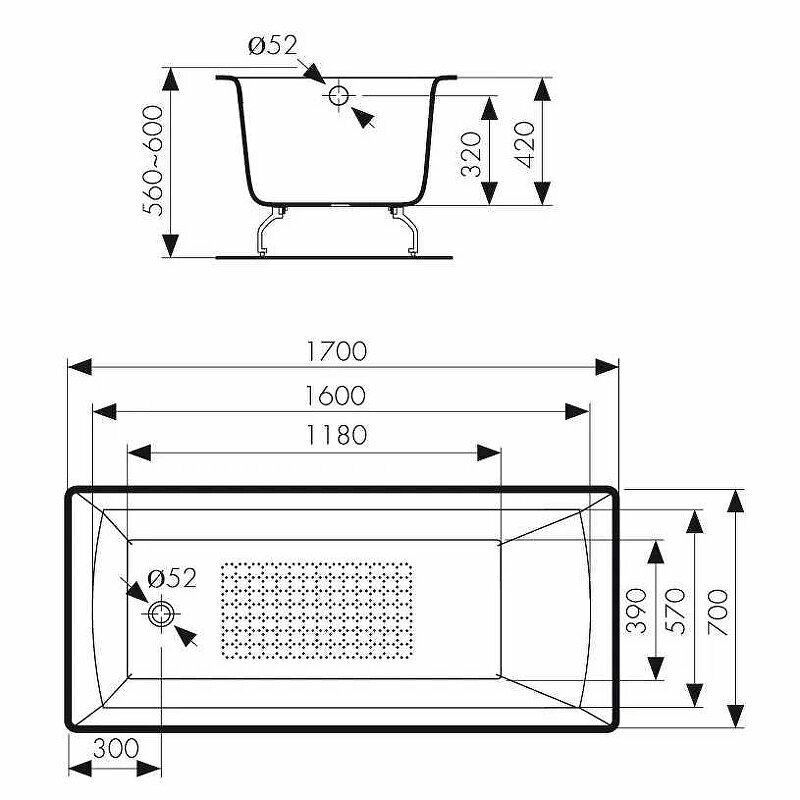 Чугунная ванна Kaiser 170х70 КВ-1803.