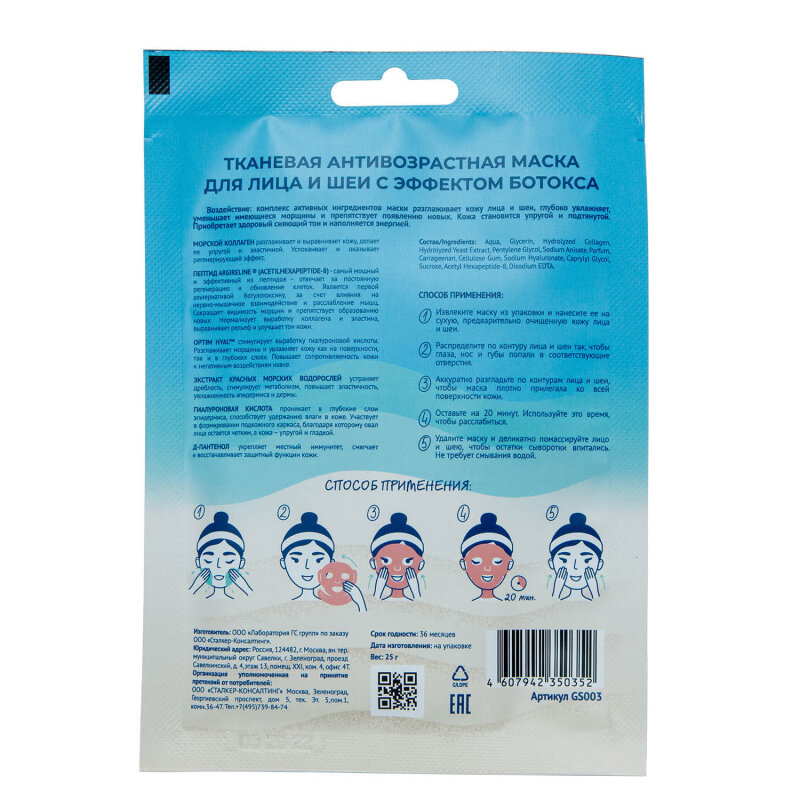 Сервис сравнения цен СкидкаГИД предлагает сравнить цены на товар «Qtem Антивозрастная тканевая маска для лица и шеи с эффектом филлера 25 г (Qtem ) (ЭХ99989428534)»