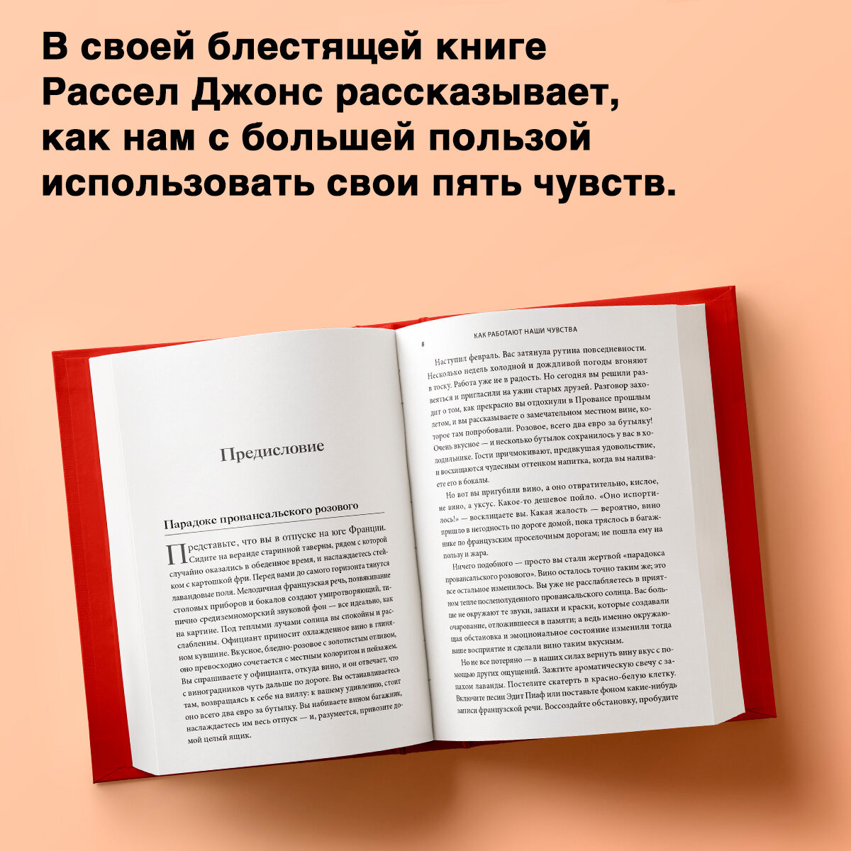 Наши самочувствие и работоспособность зависят даже от температуры воздуха в помещении и от того, какие предметы лежат перед нами на столе. Рассел Джонс, эксперт по мультисенсорному маркетингу, объясняет, как с помощью воздействия на органы чувств улучшить повседневную жизнь. Он предлагает целый ряд "сенсорных рецептов", которые помогут получать больше пользы и удовольствия от обычных повседневных действий. В его рецептах объединяются звуки, музыка, запахи, освещение, цвета и текстуры.