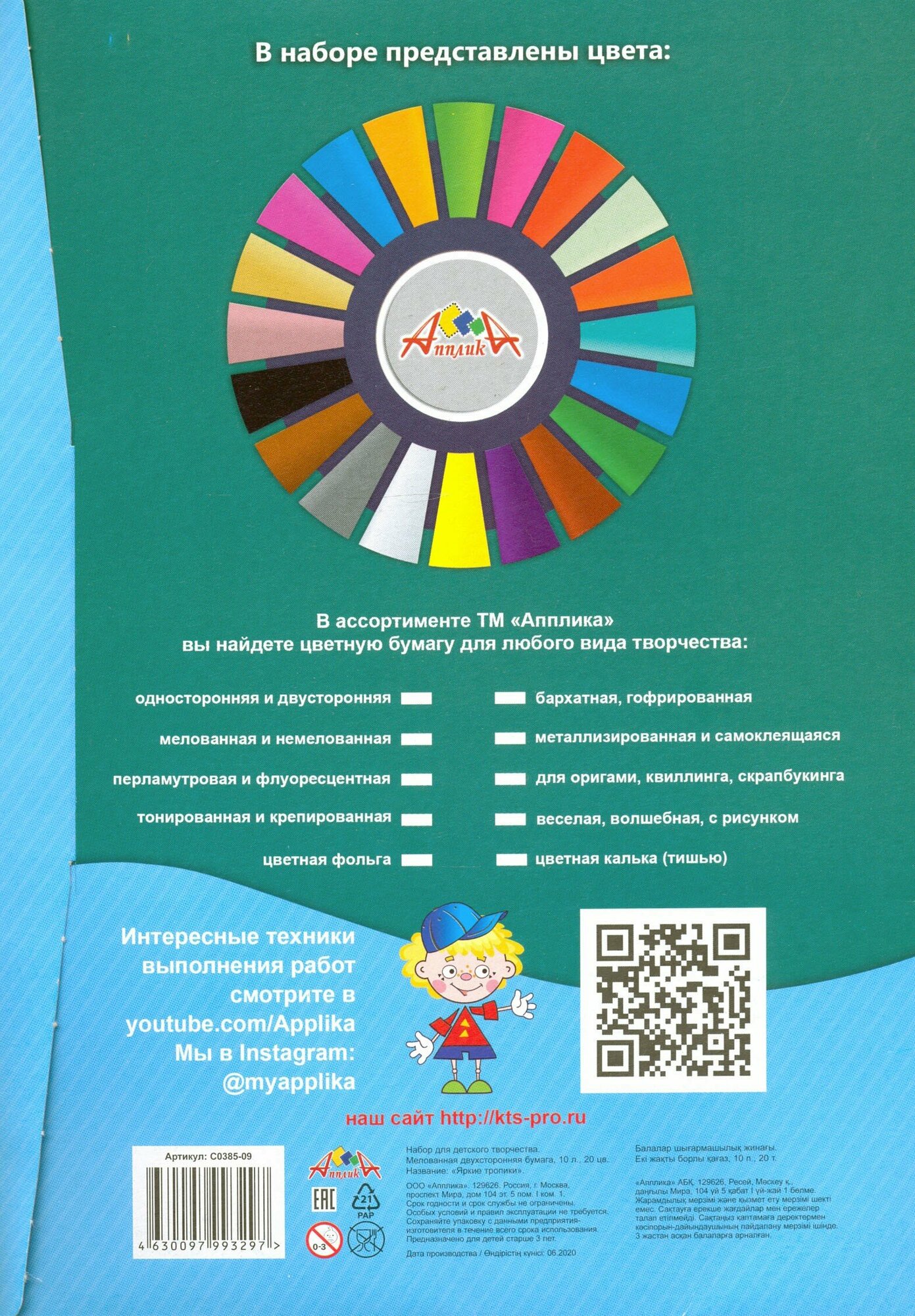 Бумага цветная двусторонняя мелованная (10 листов 20 цветов) Яркие тропики (С0385-09) АппликА