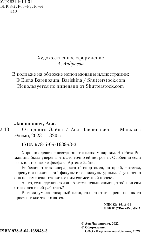 От одного Зайца (покет большого формата) (Ася Лавринович); Эксмо, Like Book, Редакция 1, 2024