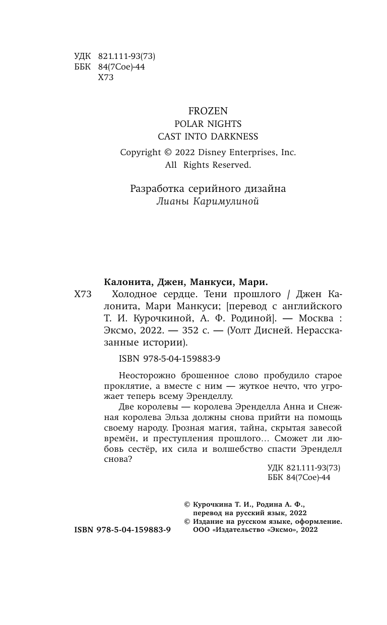 Холодное сердце. Тени прошлого (Джен Калонита, Мари Манкуси); Эксмо, Эксмодетство, 2022