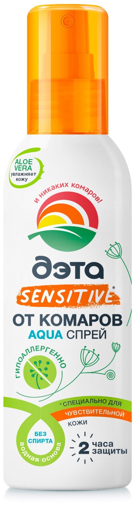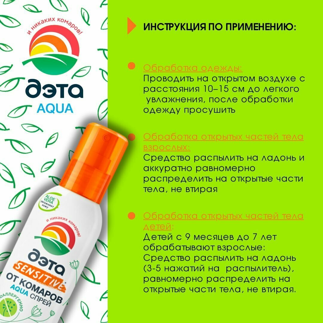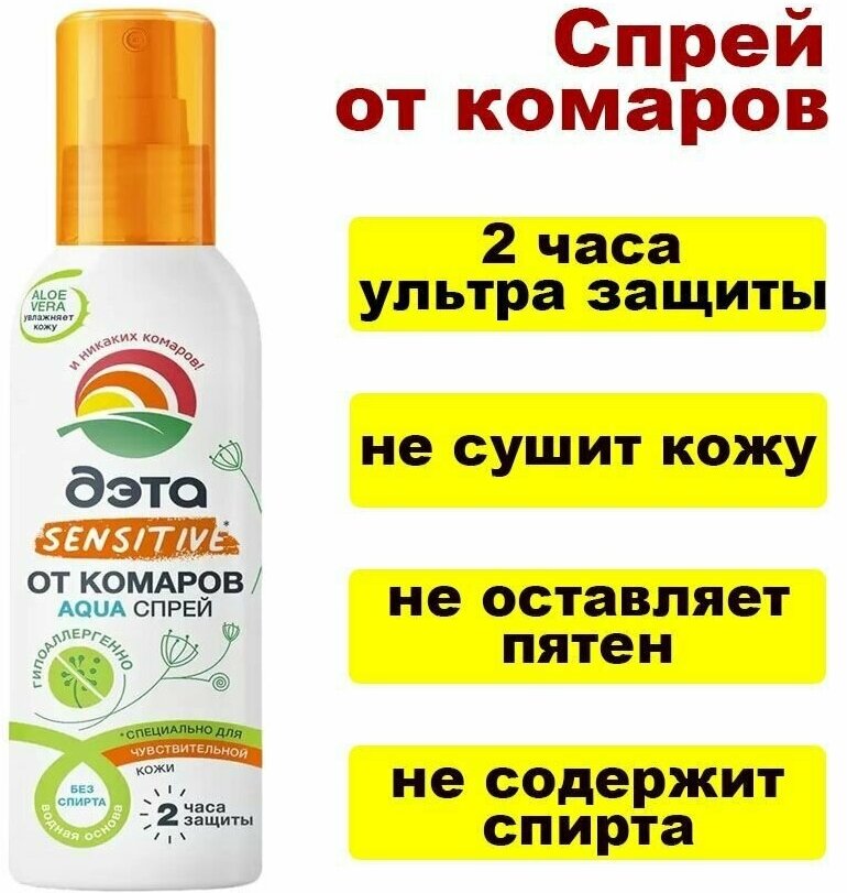 Спрей от комаров для чувствительной кожи для взрослых и детей с 9 мес. Aqua Дэта 100мл Химик ОАО (501335)
