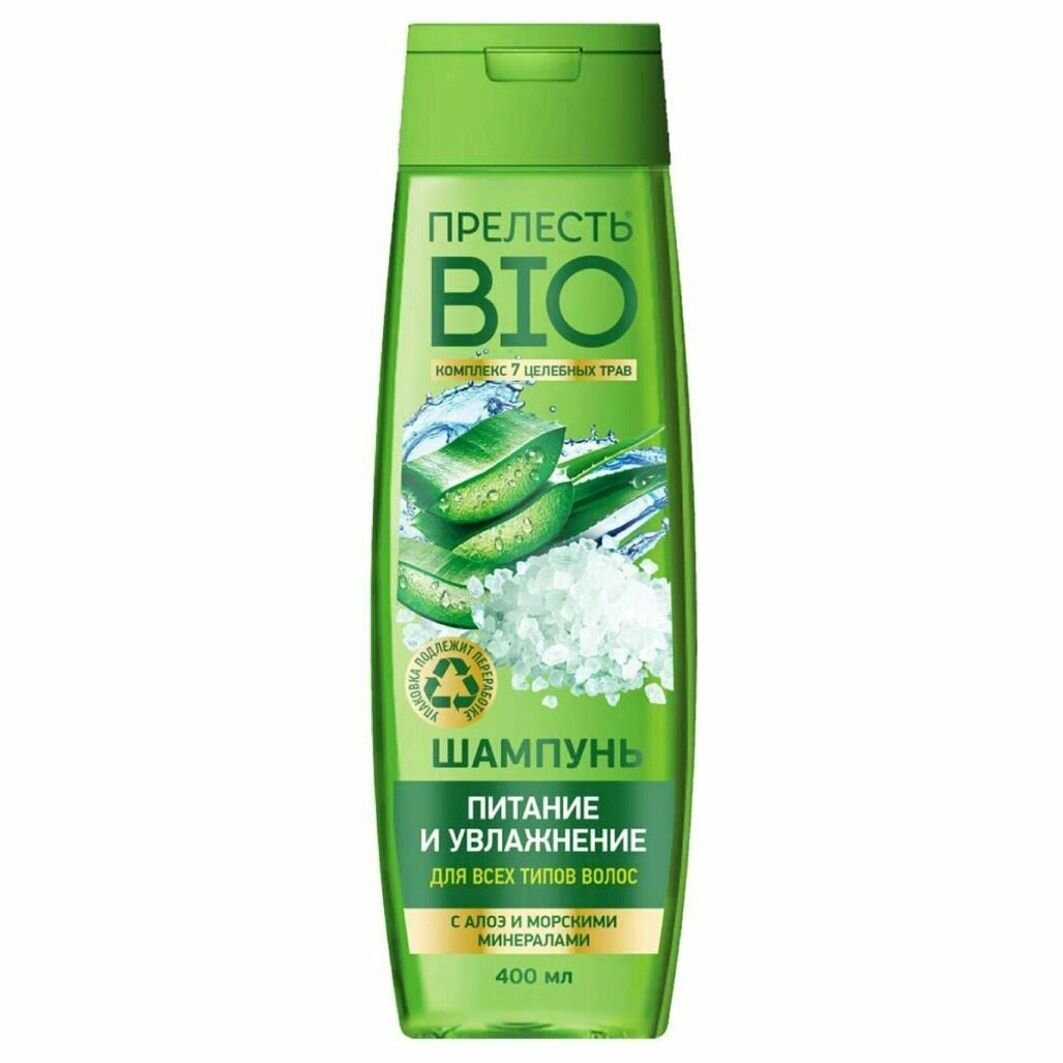 Шампунь для волос Прелесть Био Питание и увлажнение с морскими минералами и алоэ 400мл