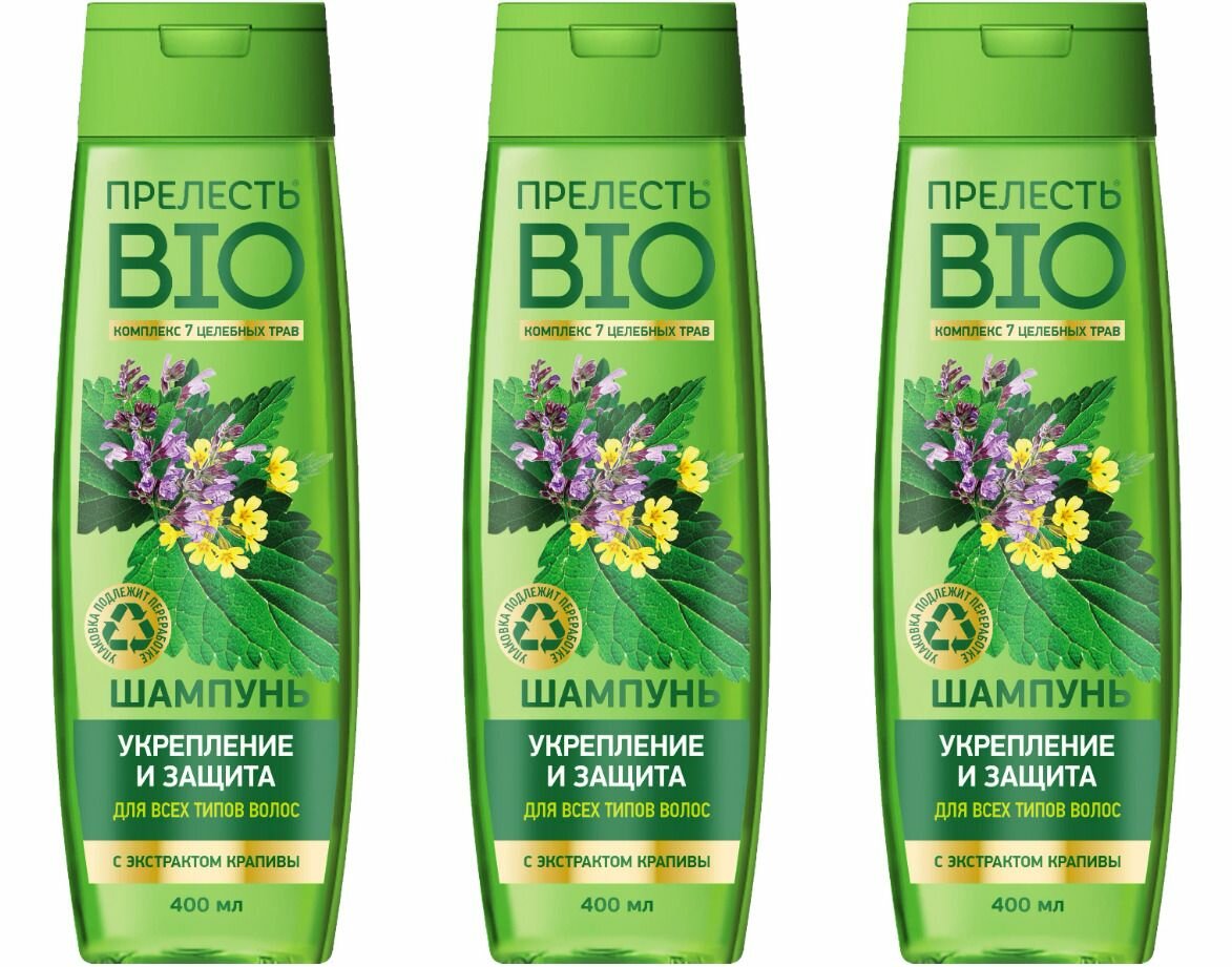 - Шампунь ПРЕЛЕСТЬ БИО Укрепление и Защита с экстрактом крапивы для всех типов волос
