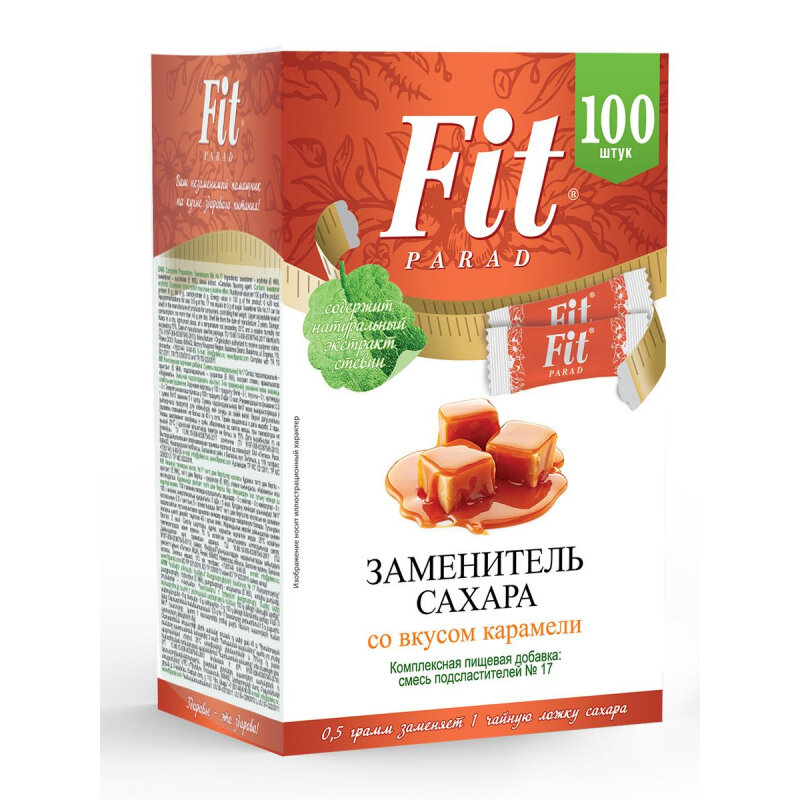 Новая, более удобная упаковка для разового употребления - пакетик-стик. теперь с новыми вкусами! Инновационный низкокалорийный заменитель сахара на основе природных компонентов. Заменитель сахара ФитПарад № 17 можно использовать для приготовления десертов и сладких напитков, а также добавлять в каши и другие блюда, принимая во внимание то, что продукт слаще сахара в 10 раз. Подсластитель безопасен для больных диабетом и может использоваться в диетическом питании людей, страдающих лишним весом. Кроме того, спортсмены и сторонники здорового питания также являются потребителями данного продукта. Попробуйте и Вы! Состав: подсластитель эритрит (Е968), подсластитель сукралоза (Е955), экстракт стевии, ароматизатор "Карамель". Внимание! 1 пакетик-стик- 0.5 г В пачке 100 пакетиков. Рекомендации по применению: 0.5 г смеси "ФитПарад" №17 заменяет 5 г сахара. Дозировка: не более 45 г в сутки. Один пакетик саше заменит 1 чайную ложку сахара.