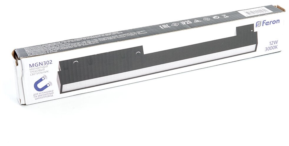 Светильник светодиодный Feron MGN302 трековый низковольтный 12W 960 Lm 3000К 110° черный Артикул 41943 MGN302