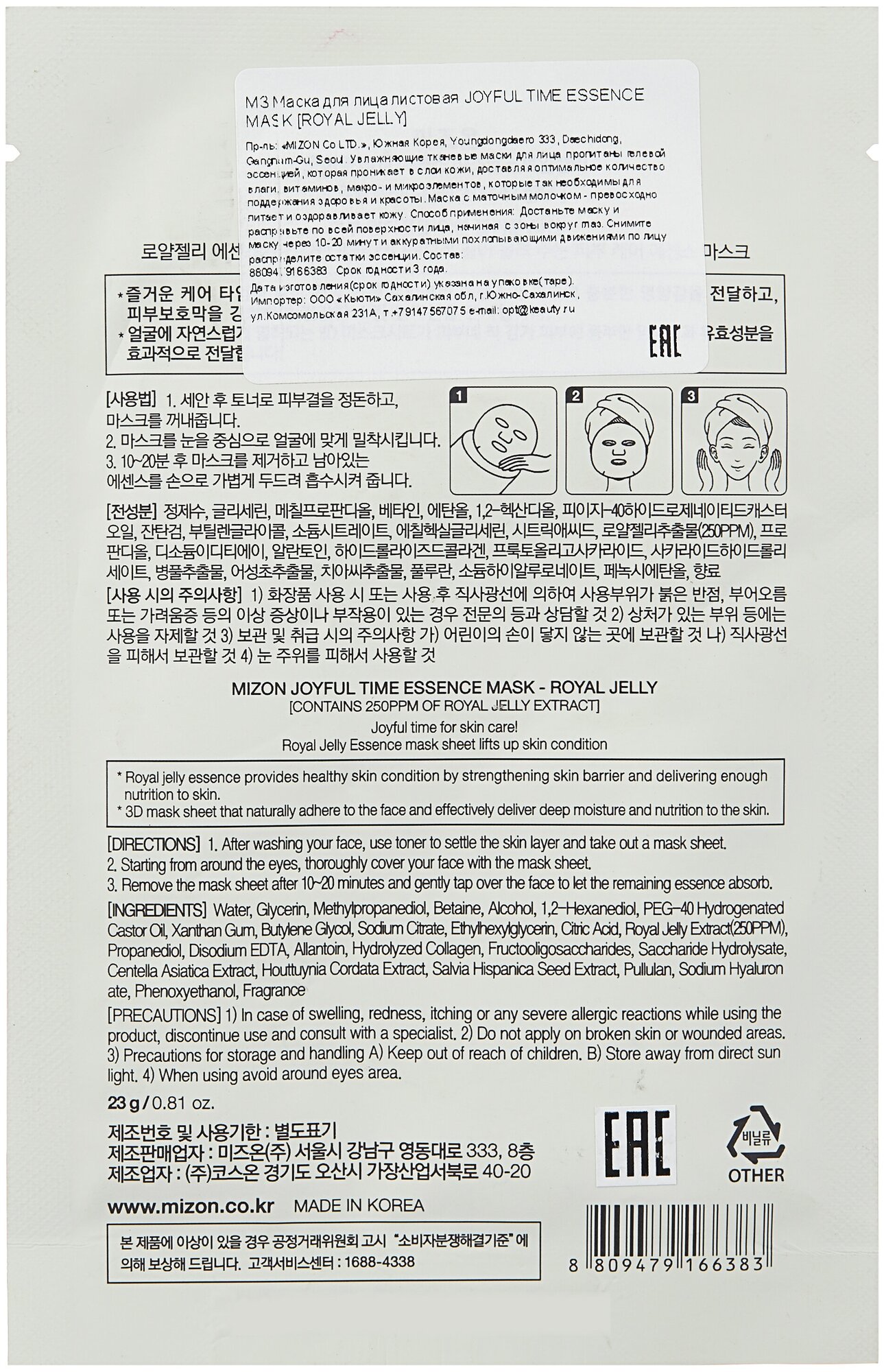 Mizon Тканевая маска с экстрактом маточного молочка 23 г (Mizon ) (ЭХ99989428678)