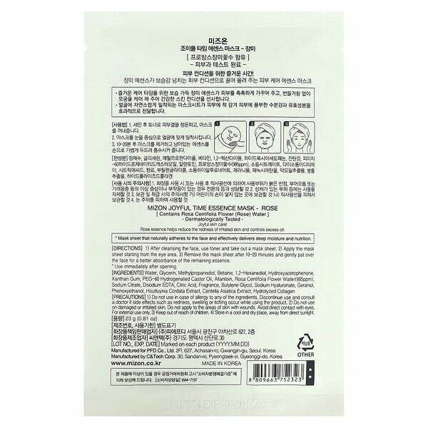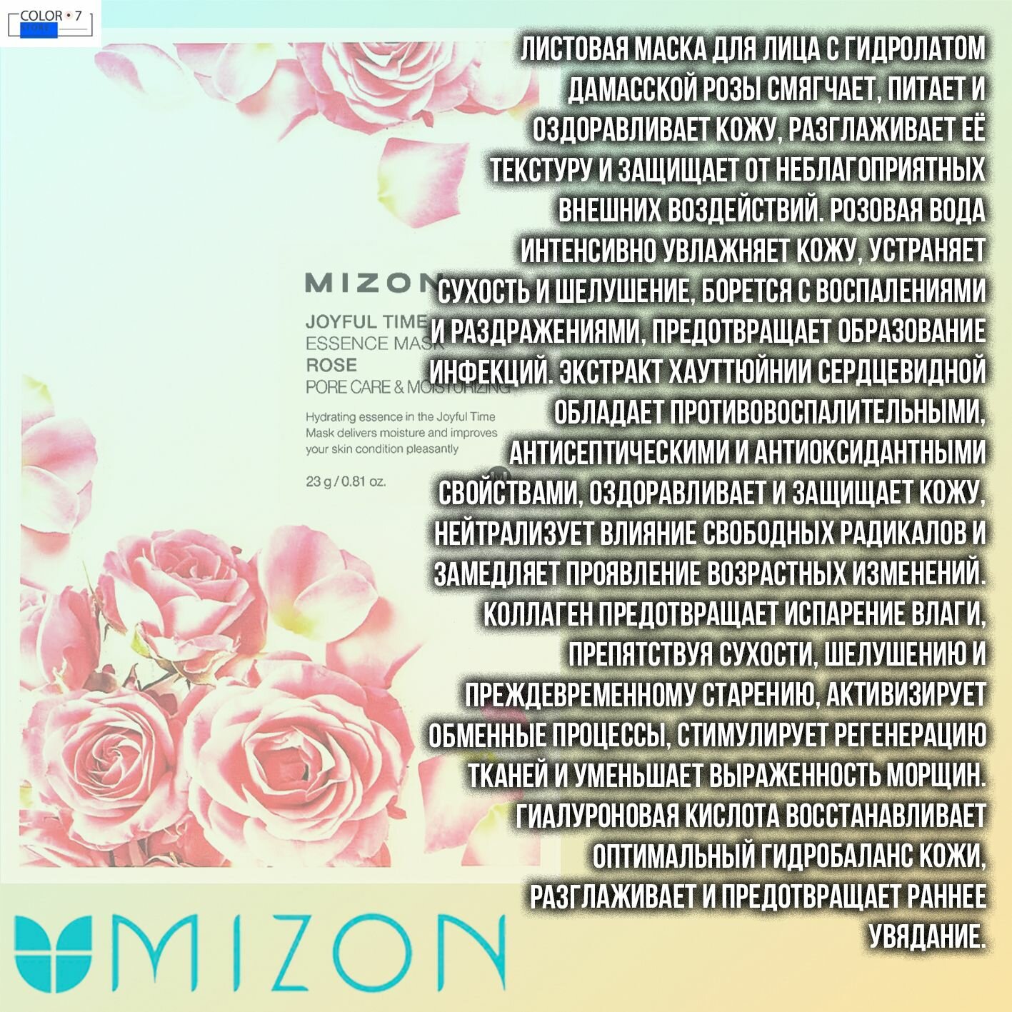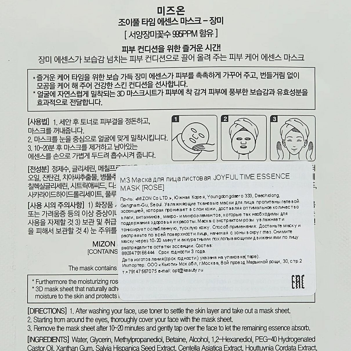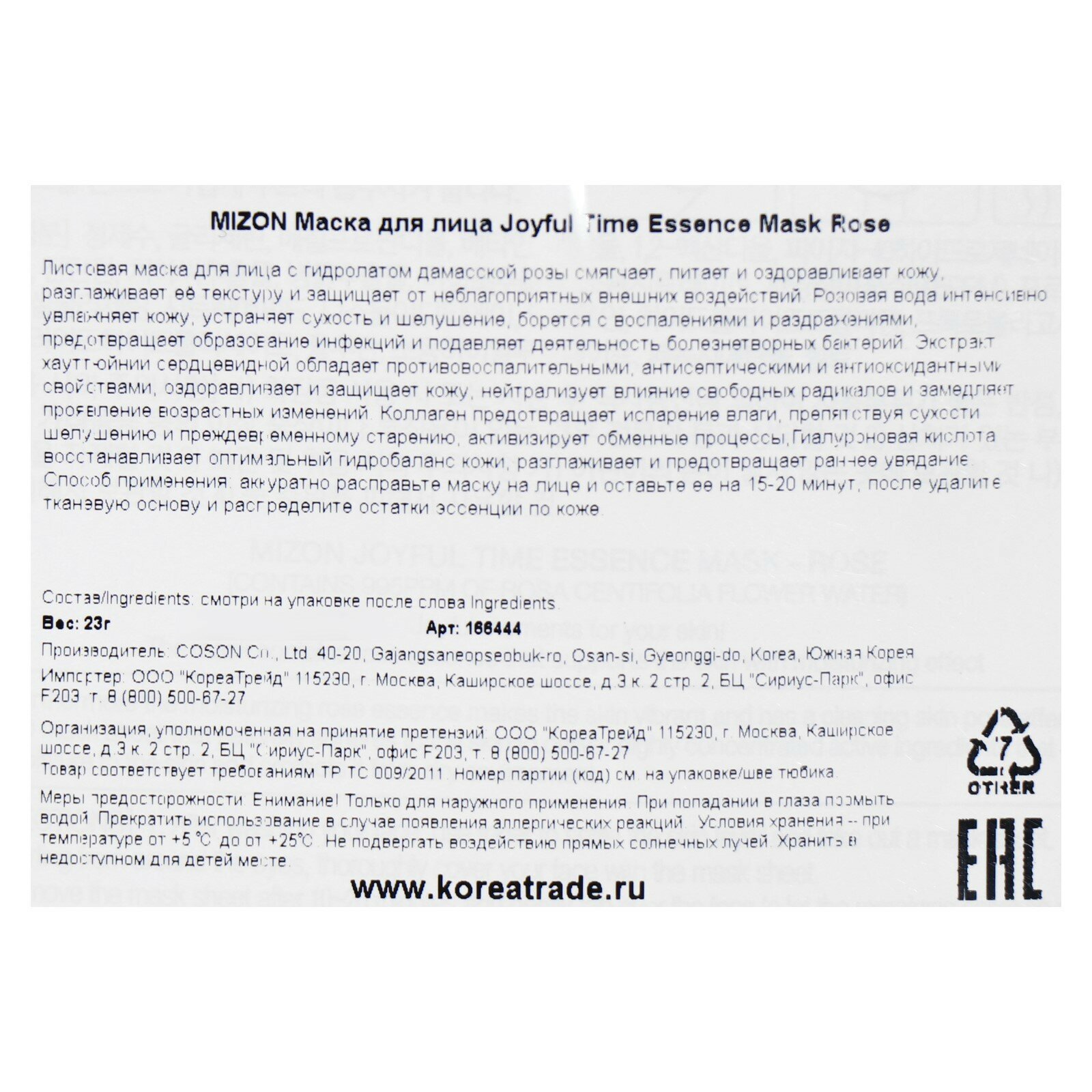 - 8809479166444 MIZON JOYFUL TIME ESSENCE Тканевая маска для лица с экстрактом лепестков розы, 23мл
