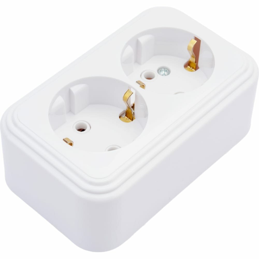 Розетка STEKKER PST16-31-20 на 2 гнездо, с заземлением. Материал: ABS пластик, цвет белый, размер 106*65*41мм. Номинальное напряжение 250, номинальный ток 16А, диапазон рабочих температур 0..+35°C, IP20