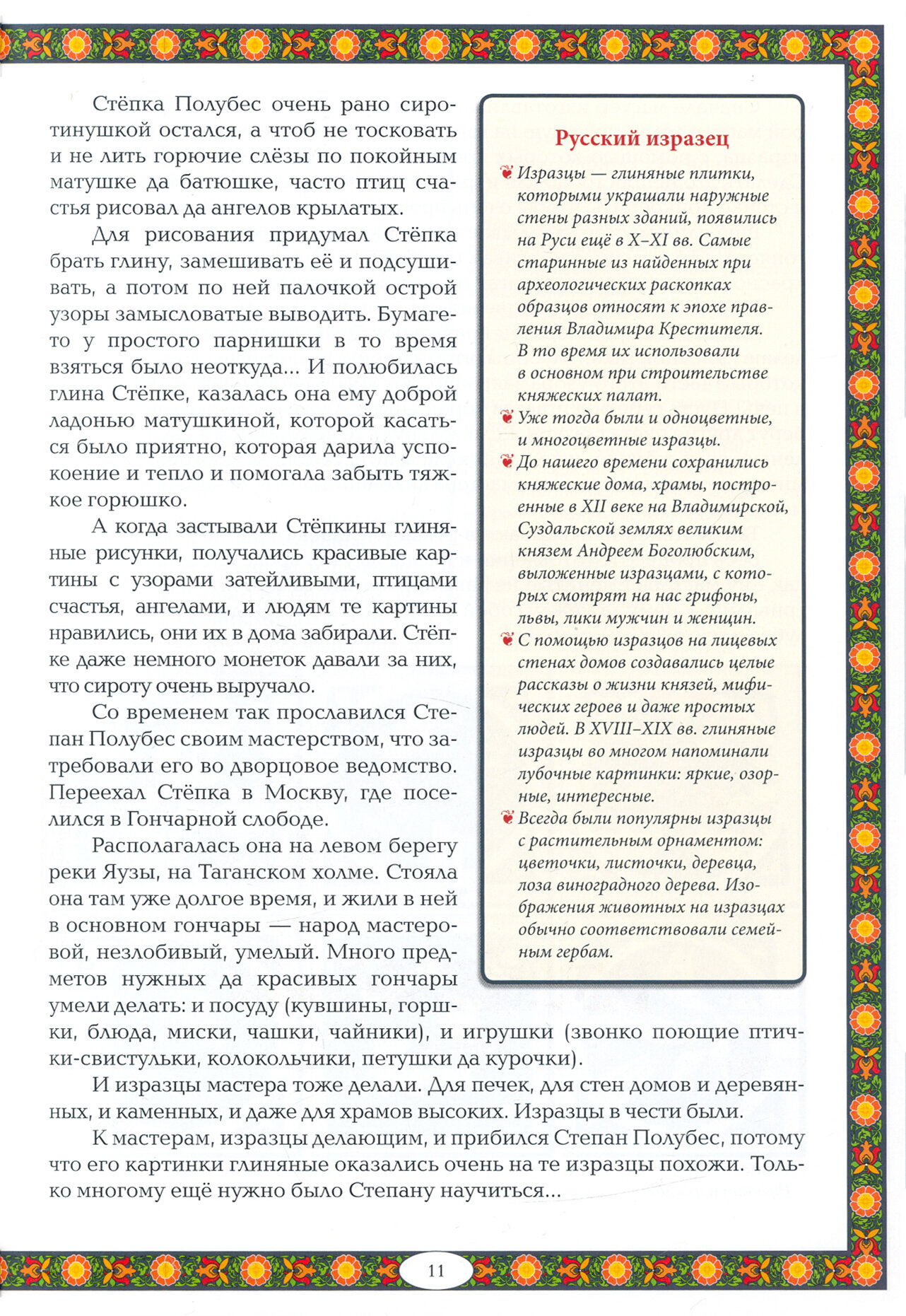 Автор поставила перед собой уникальную задачу: в сказочной форме рассказать не только об истоках мастерства, но и о том, как жили простые люди в старину, во что верили, что любили, в чём искали вдохновение для своего творчества.