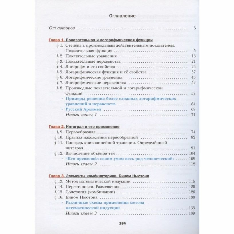Учебник предназначен для изучения алгебры и начал математического анализа в 11 классе общеобразовательных организаций. В нем предусмотрена уровневая дифференциация, позволяющая формировать у школьников интерес к алгебре и началам математического анализа. Вместе с программой, дидактическими материалами, методическим пособием для учителя составляет учебно-методический комплект "Алгебра и начала анализа. 11 класс" для базового уровня освоения образовательной программы среднего общего образования. Входит в систему "Алгоритм успеха". Соответствует федеральному государственному образовательному стандарту среднего общего образования (2012 г).
