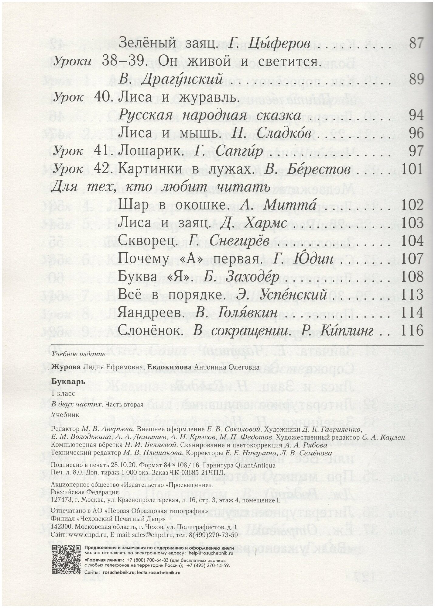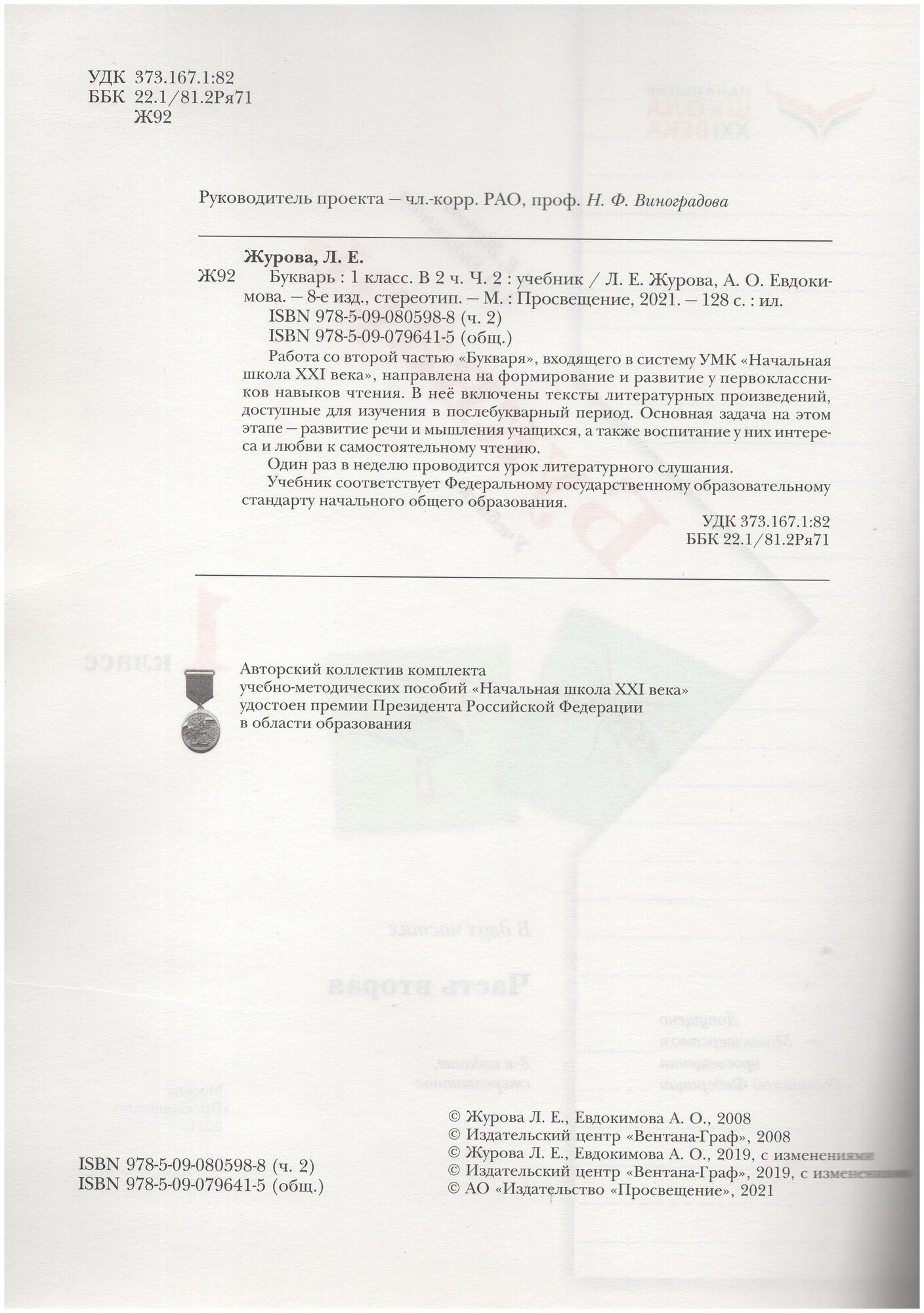 Букварь 1 класс Учебник В двух частях Часть вторая (Антонина Олеговна Евдокимова, Лидия Ефремовна Журова); Вентана-Граф, 2022