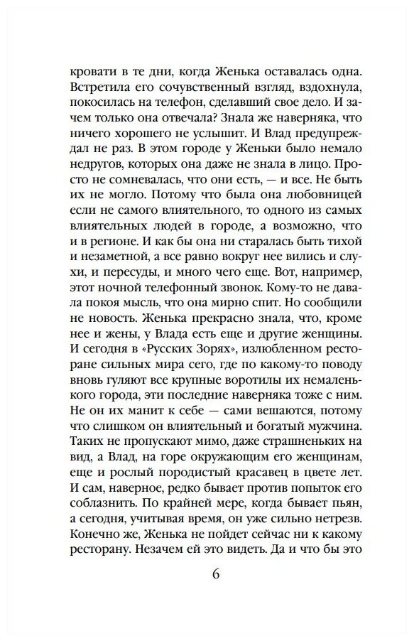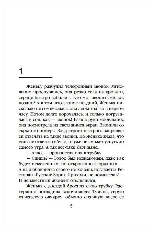Женька вовсе не роковая красотка и не гламурная дамочка, она дичится людей, предпочитая им общество собак, и хотела бы жить не в городе, а в лесу. Но три года назад она спасла тяжело раненного бизнесмена Влада Загорова, и с тех пор у них роман, которому не мешают ни многочисленные случайные связи Влада, ни наличие у него красавицы жены. Когда Загоров вновь становится мишенью киллеров, именно Женька, преодолевая собственные комплексы и страхи, вместе со старым боевым товарищем Влада расследует покушения на него. И она же рискует оказаться главной подозреваемой в убийстве…