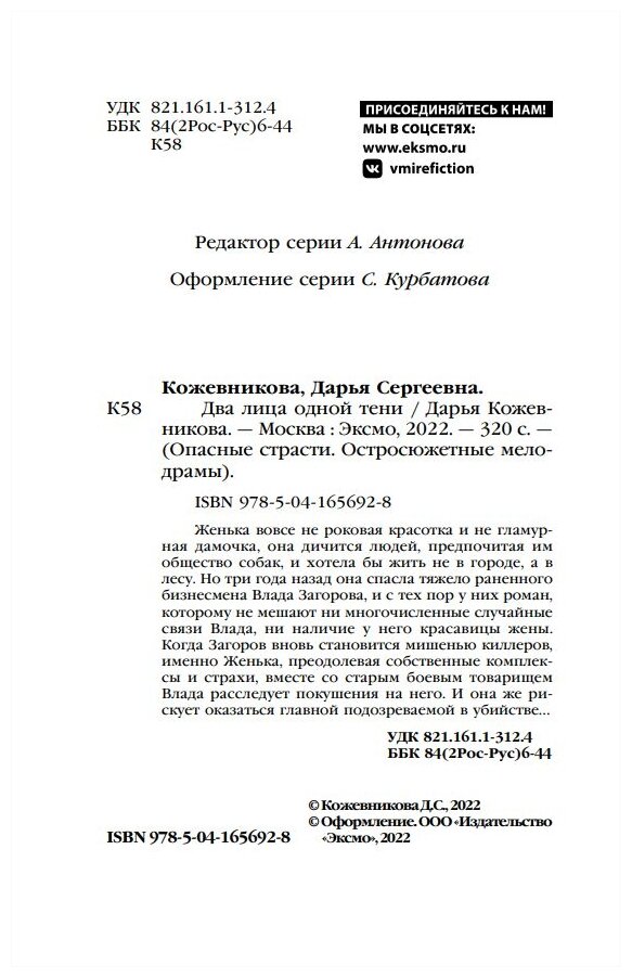 Книга: Два лица одной тени (Кожевникова Дарья Сергеевна); ООО "Издательство "Эксмо", 2022