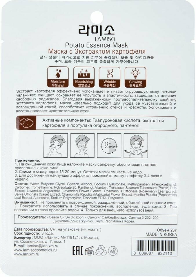 Маска для лица La Miso с экстрактом картофеля 23г