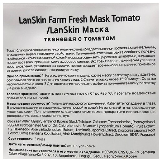 Маска для лица LanSkin тканевая с томатом 21мл