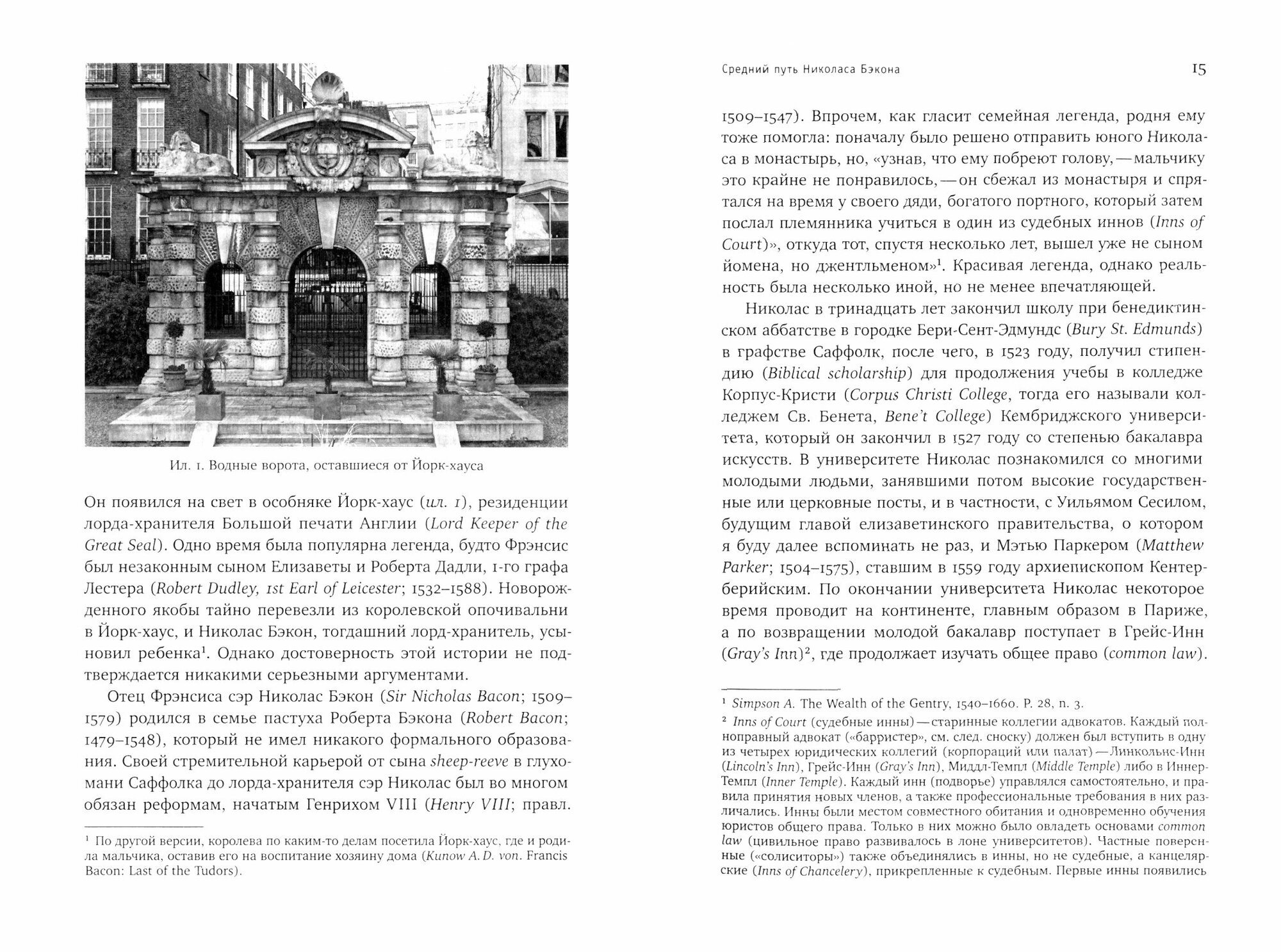 Несмотря на то, что философские идеи Фрэнсиса Бэкона хорошо изучены и описаны, его жизненному пути в литературе уделяется мало внимания. Монография И. С. Дмитриева, первая на русском языке биография Ф. Бэкона, написана на основе архивных материалов и широкого круга первоисточников. Жизнь героя книги представлена в контексте сложной, наполненной драматическими событиями эпохи в истории Англии второй половины XVI — начала XVII столетий. Один из самых одаренных людей своего времени, Фрэнсис Бэкон отдавал много сил и времени не только философии, но и активной политической деятельности. В книге он предстает в различных ипостасях — философа, юриста, политика, придворного. Автор детально касается малоисследованной, окруженной многочисленными мифами истории импичмента Ф. Бэкона, занимавшего на вершине своей политической карьеры пост лорда-канцлера Англии и обвиненного в 1621 году в коррупции. Игорь Сергеевич Дмитриев — историк науки, профессор Института философии человека Российского государственного педагогического института им. А. И. Герцена.