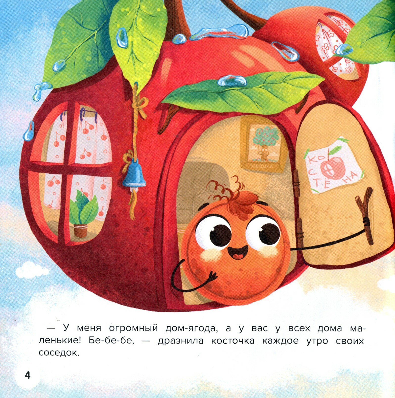 Вишнёвая косточка Костёна живёт в самой большой ягоде и очень гордится этим. Все вокруг устают от неё и делают вид, что не слышат. Происходит ужасное: ягоду съедает птица, и Костёна оказывается на земле. Ей становится одиноко, она катится в сторону леса и плачет. Что же было дальше, узнаете в этой увлекательной книжке!