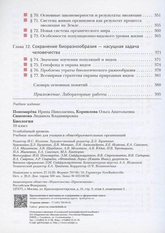 Биология 10 класс Углубленный уровень Учебное пособие (Пономарева И., Корнилова О., Симонова Л.); ВЕНТАНА-ГРАФ, 2021
