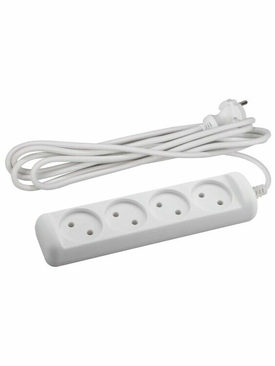 удлинитель бытовой (3м 4 гнезда 10а б/з белый) эра ux(6)-4-3m Б0038570