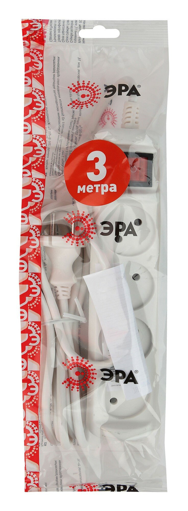 удлинитель бытовой (3м 4 гнезда с выкл. 10а б/з белый) эра u-4s-3m-2x1