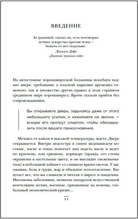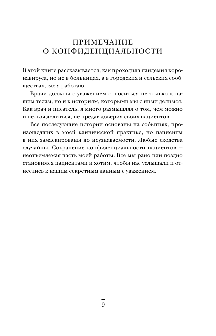 Первая волна коронавируса была совсем недавно, воспоминания о ней ещё свежи, но мы смотрим на события с точки зрения людей, закрывшихся тогда в квартирах и обрабатывающих чуть ли не каждый сантиметр кожи антисептиком. Эта книга интересна тем, что в ней повествование ведётся от лица врача — человека, который должен был лечить ранее не известную болезнь. Пронзительная книга, с которой стоит ознакомиться хотя бы для того, чтобы понимать, каково тогда было врачам.