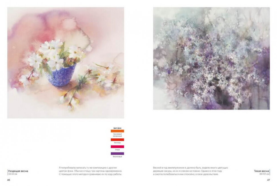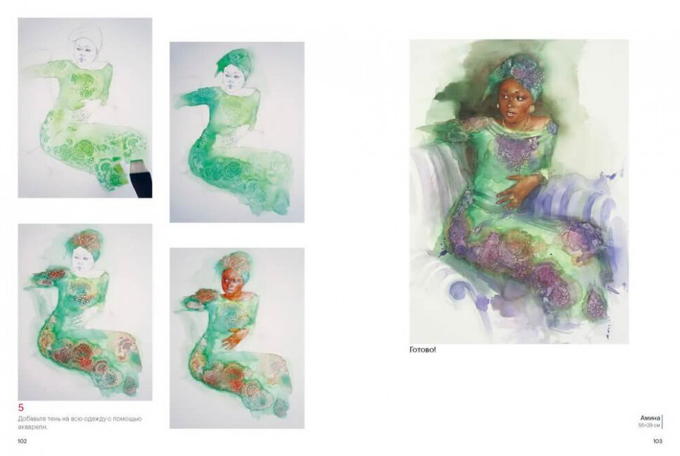 Книга действительно больше напоминает артбук или даже сборник спидпеинтов на бумаге: красиво и захватывающе, но пошагово учиться по ней сложно. Хотя мне как немножечко акварелисту (а не только "автору корявых переводов"