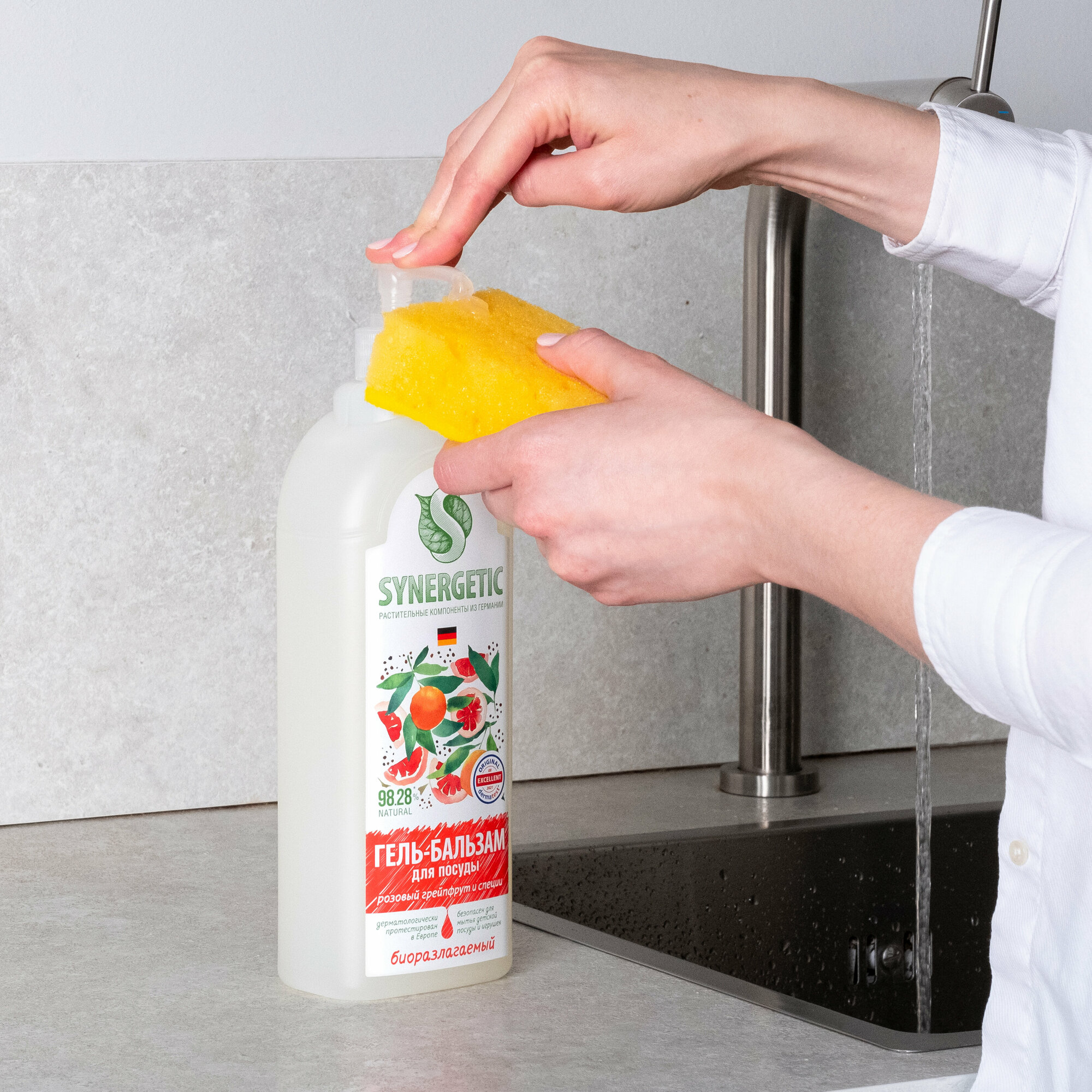 Формула геля-бальзама для посуды SYNERGETIC — это идеальный баланс эффективного моющего средства, пенообразования и бережного отношения к коже.
