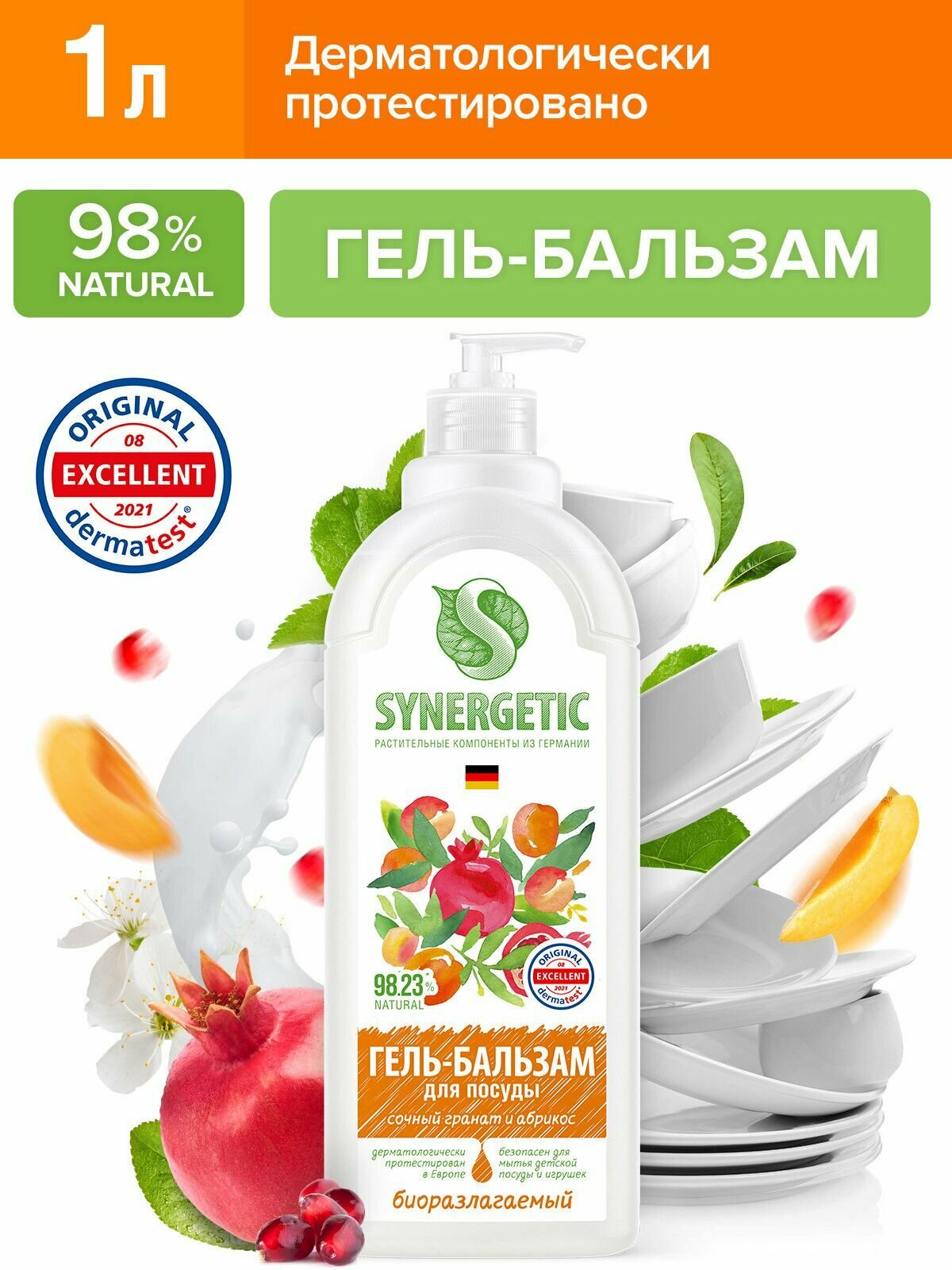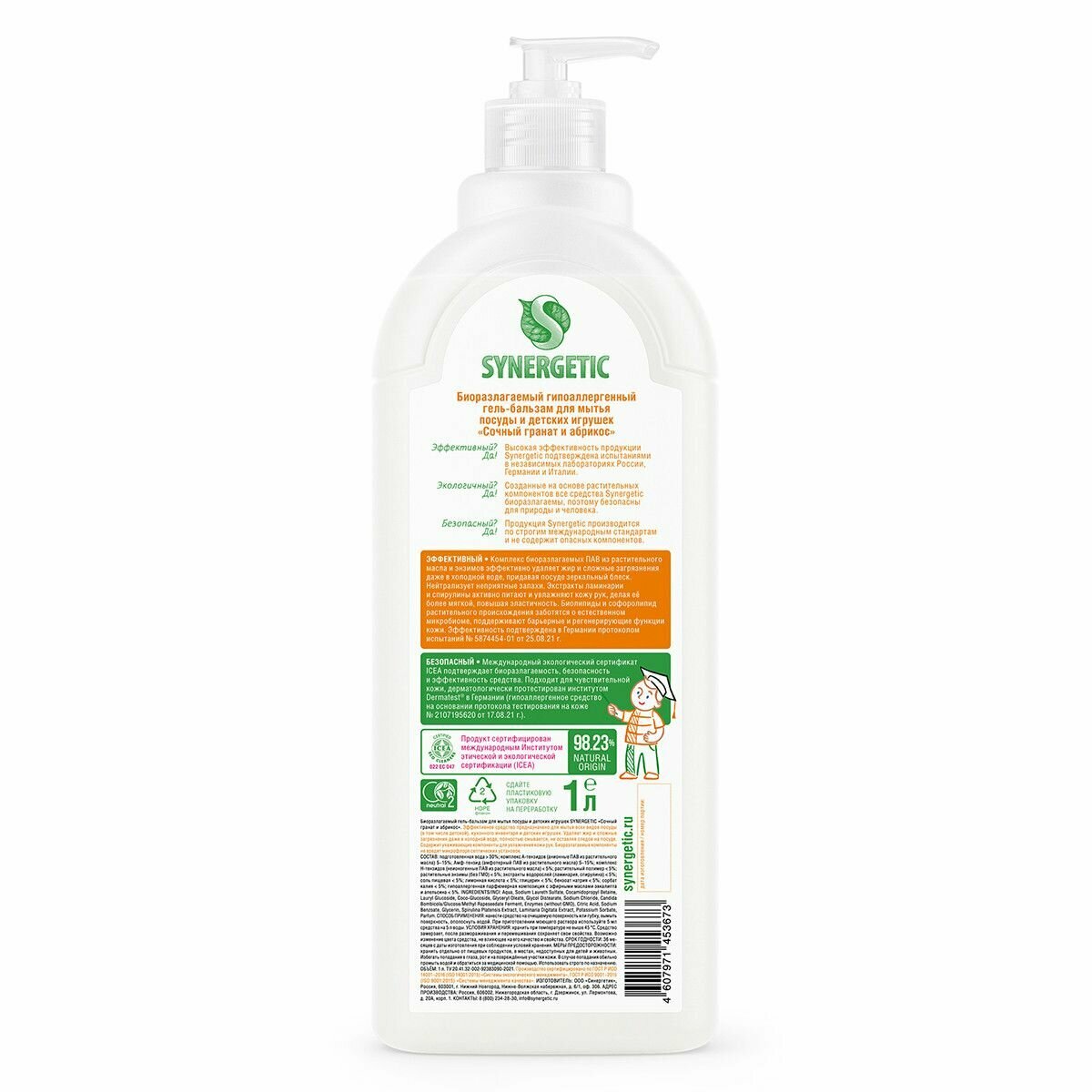 SYNERGETIC биоразлагаемый гель-бальзам для мытья посуды «Сочный гранат и абрикос» 35 л 103355