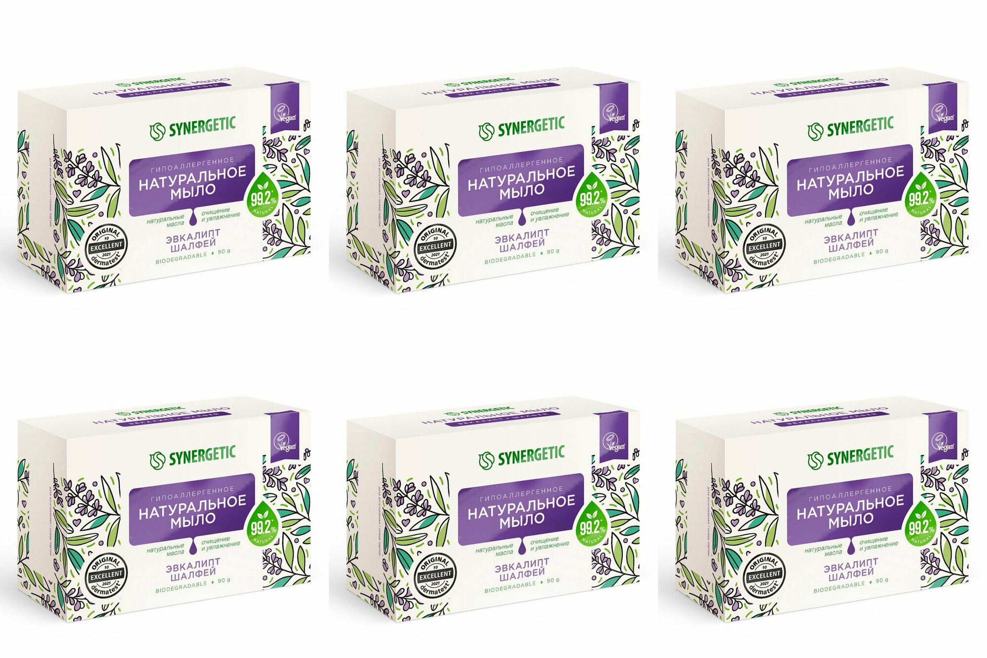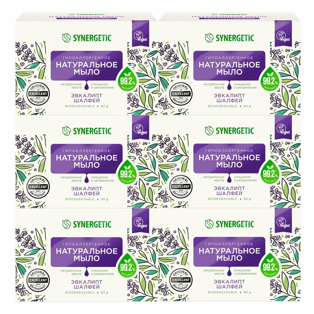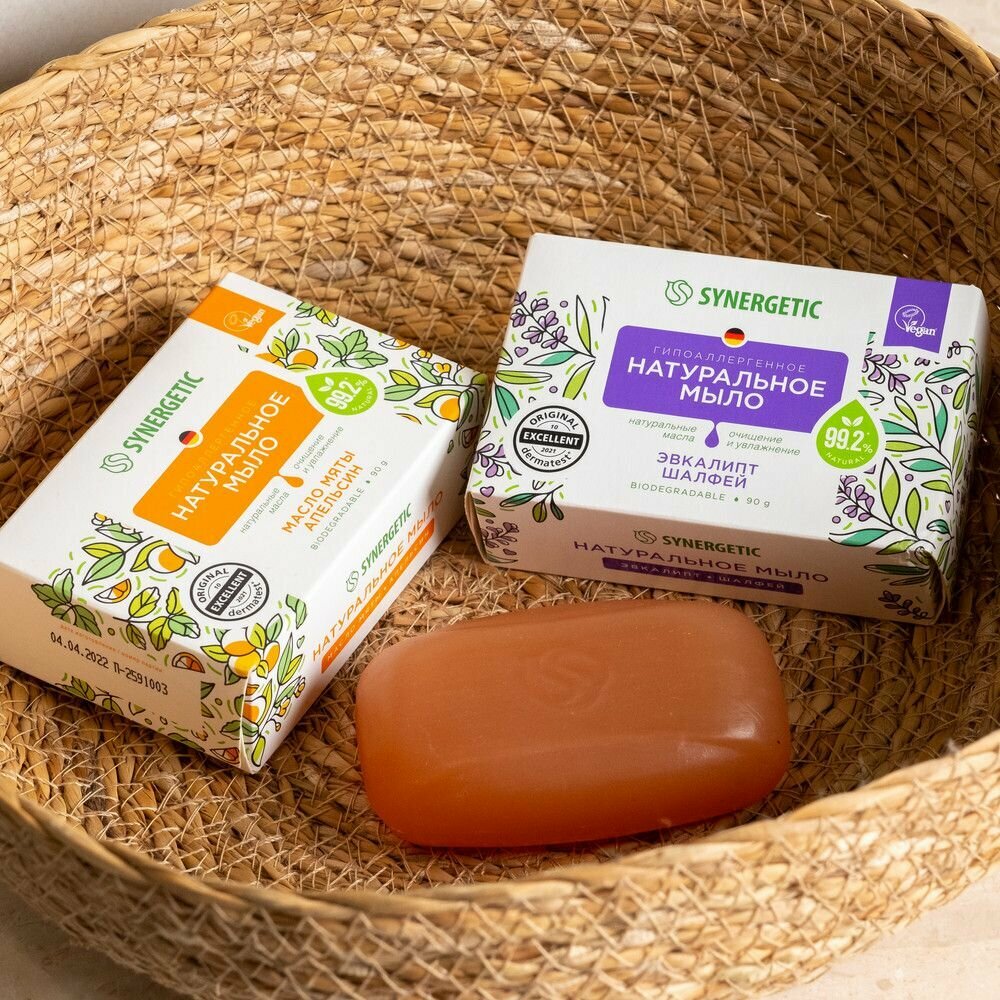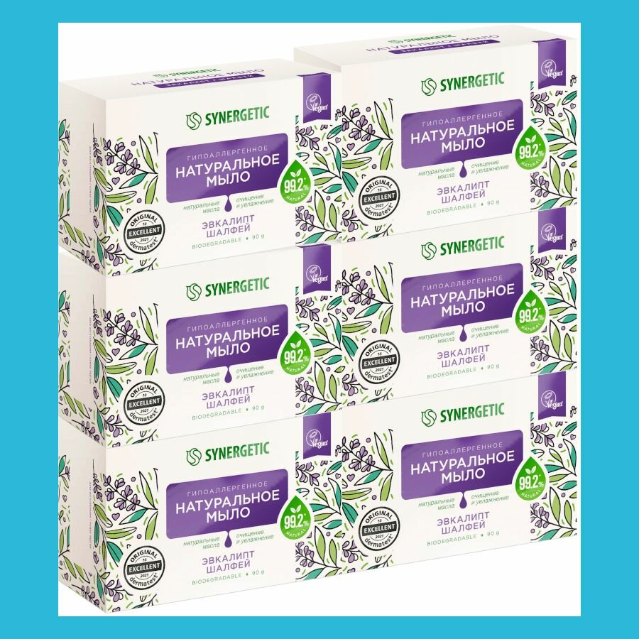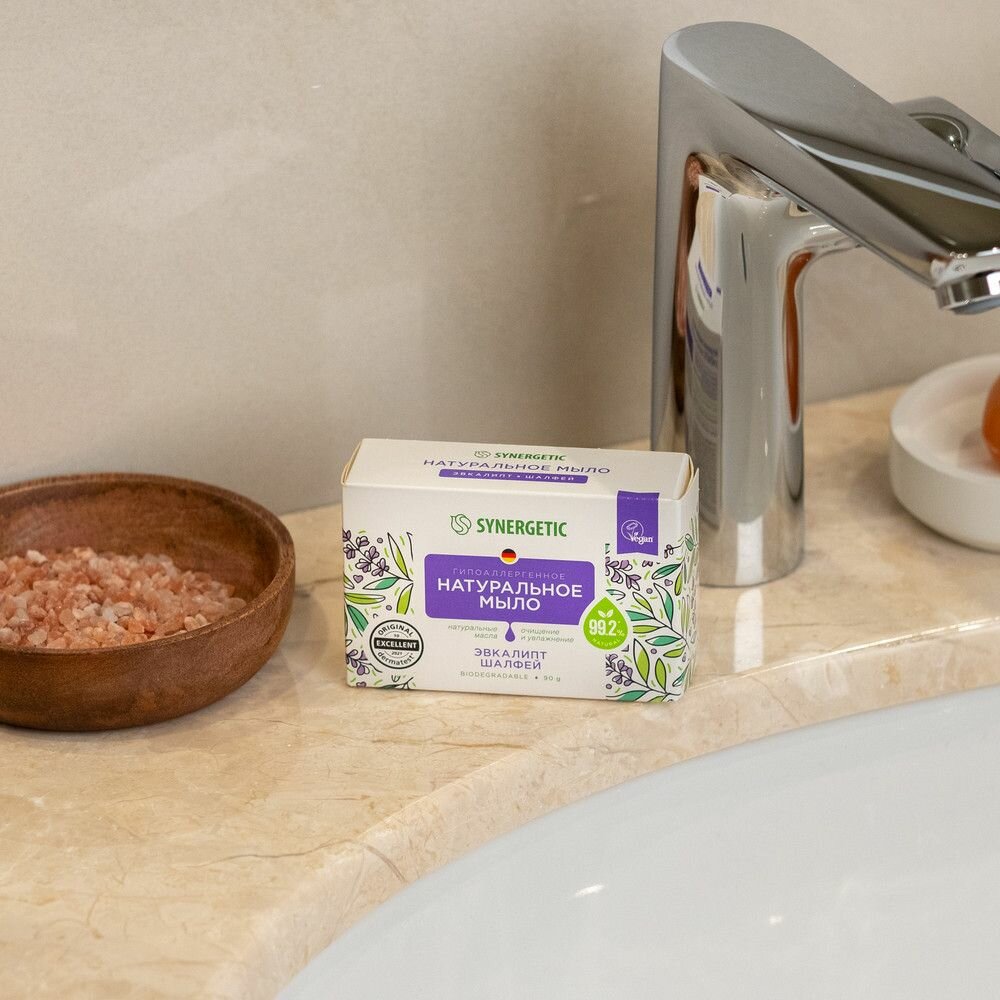 Натуральное туалетное мыло SYNERGETIC «Эвкалипт и шалфей» 90 г Синергетик
