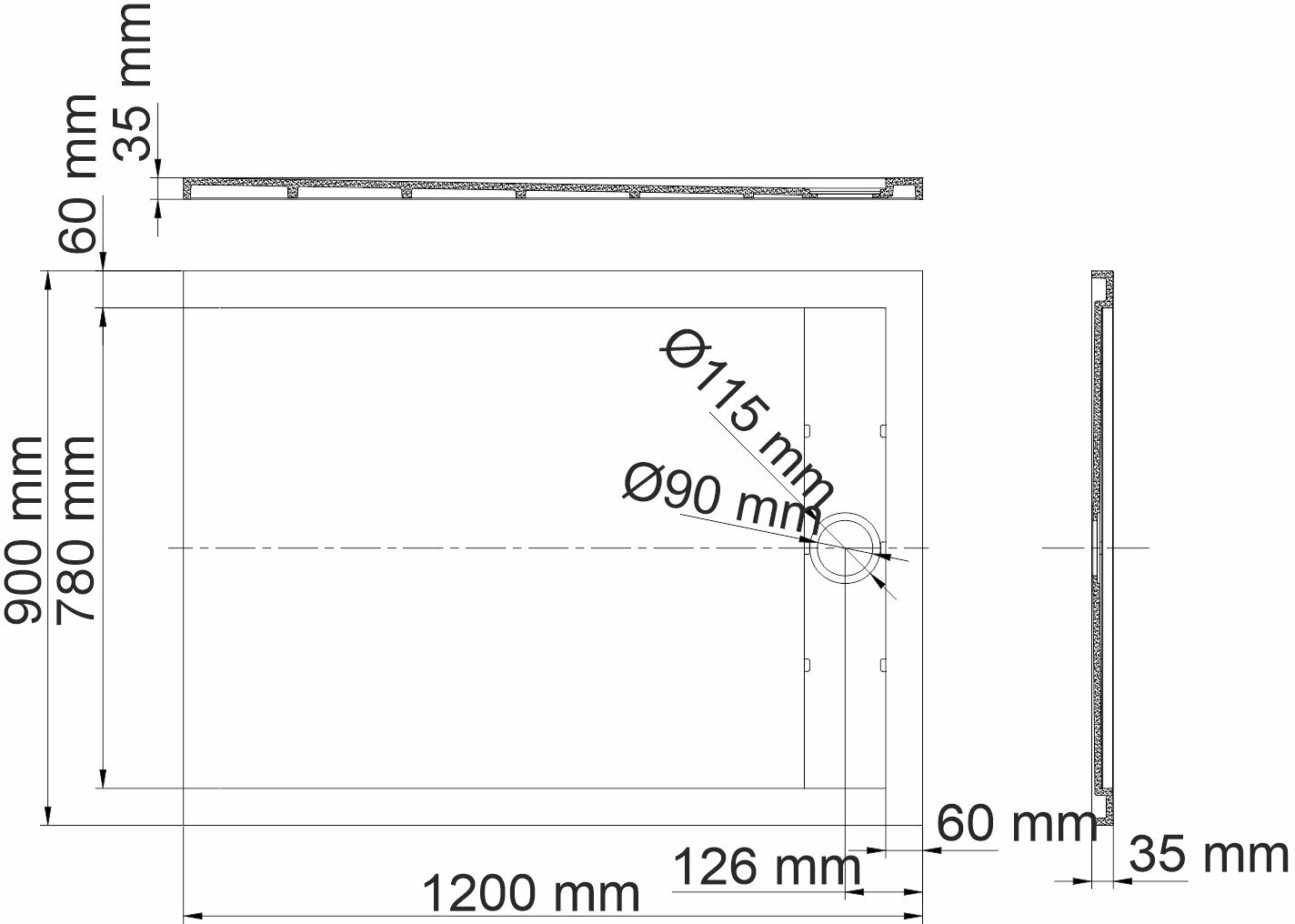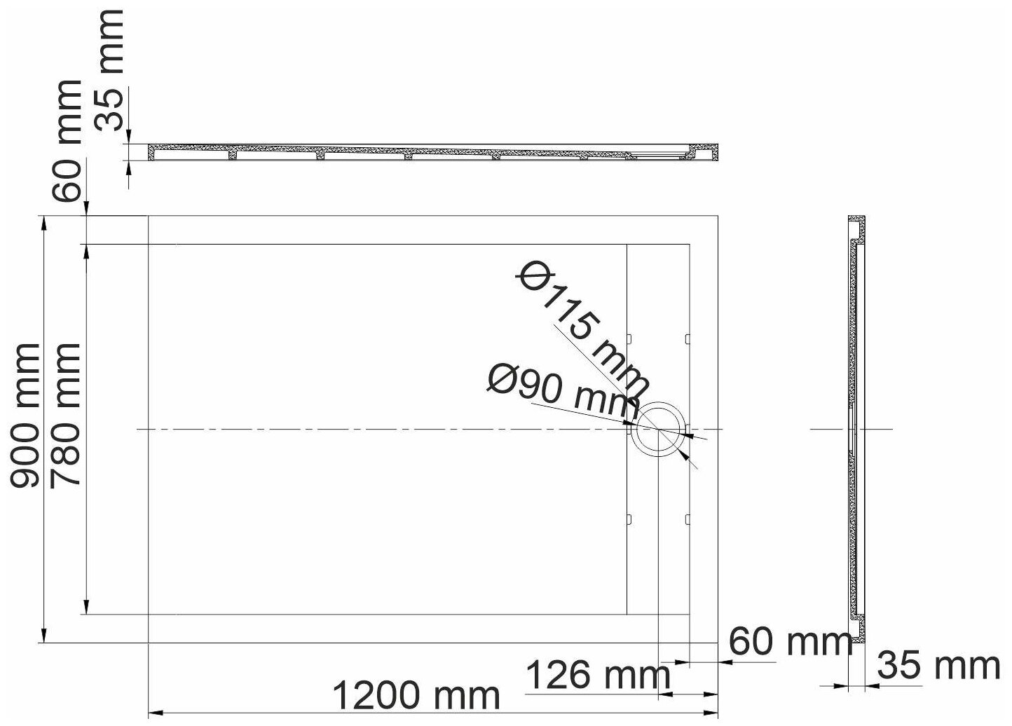 - Размеры (ШхВхД): 1200х35х900 мм.