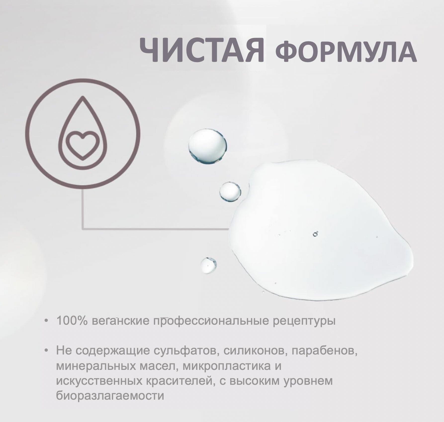 Без сульфатов, без парабенов, без силиконов, без минеральных масел, без фталатов, без микропластика.