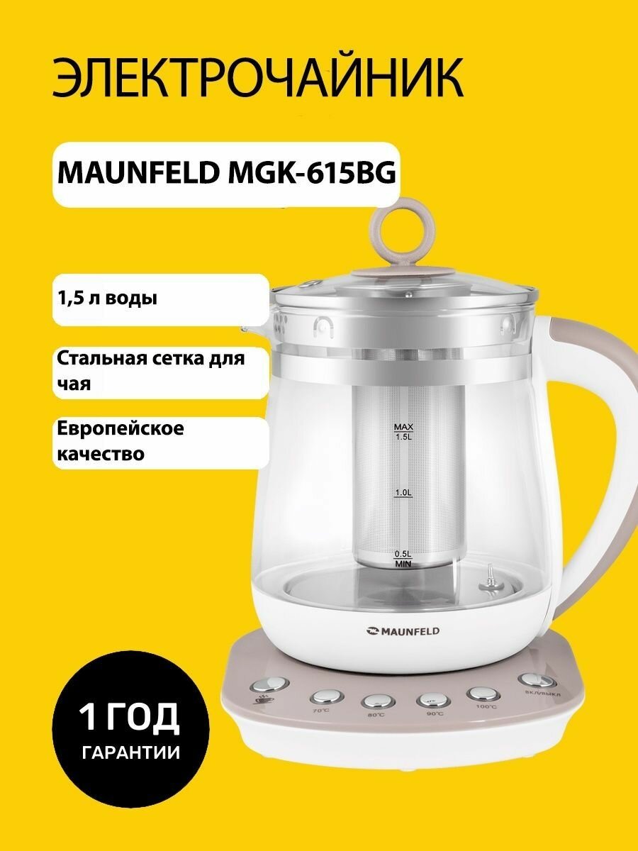 Качество исполнения, материалы, достойный дизайн, хорошая цена, надежность и гарантия и это не все плюсы эл.чайника MAUNFELD.