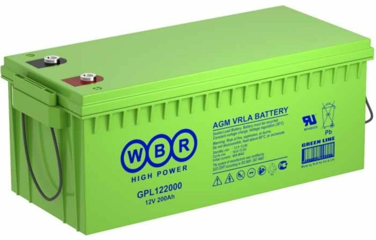 Аккумулятор WBR — герметизированные, выполненные по технологии AGM, свинцово-кислотные аккумуляторные батареи общего применения с увеличенным 12 летним сроком службы в буферном режиме или 260 циклов заряда-разряда в циклическом режиме при 100% разряде. Эти высокоэффективные перезаряжаемые батареи не требуют обслуживания в течение всего срока службы.