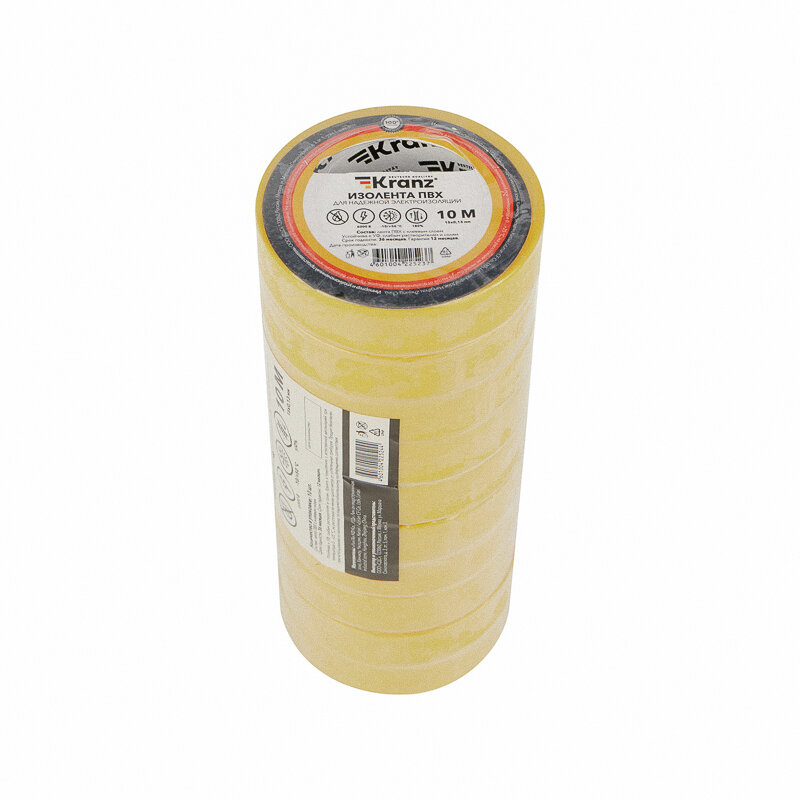 Изолента KRANZ предназначена для электрической изоляции, цветной маркировки, соединения, защиты от внешних факторов и герметизации кабелей, проводов и шнуров. Обеспечивает высокое качество обмотки и защищает места соединения от влаги, пыли, грязи, механических повреждений и перепадов температуры окружающей среды. Выполнена из высококачественной ПВХ-пленки с клеевым слоем.