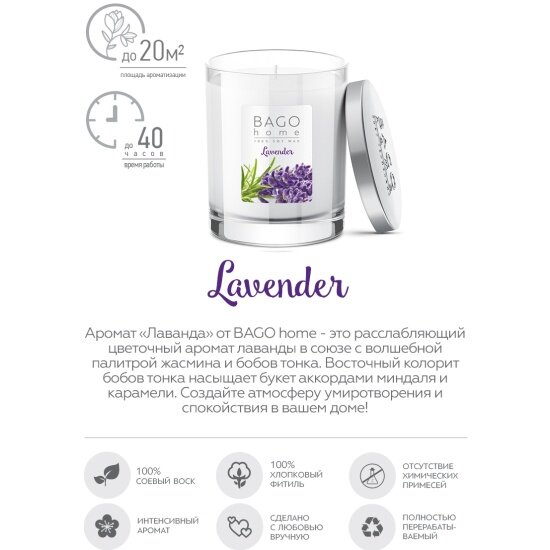 Свеча ароматическая BAGO home Ориджиналс. Лаванда (BGH0203)