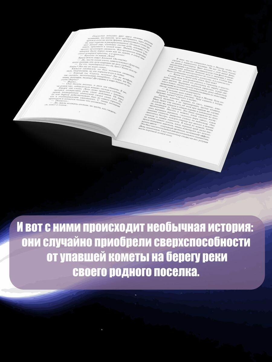 Сергей и Алексей - молодые парни, воспитанные на моральных принципах советского периода. И вот с ними происходит необычная история: они случайно приобрели сверхспособности от упавшей кометы на берегу реки своего родного поселка. Эти способности пытались использовать нечестные на руку люди, вовлечь молодых людей в криминальные истории. Как удалось братьям, Алексею и Сергею, избежать соблазна, преодолеть все трудности, встречающиеся на их пути, узнают читатели, прочитав этот увлекательный по сюжету роман.