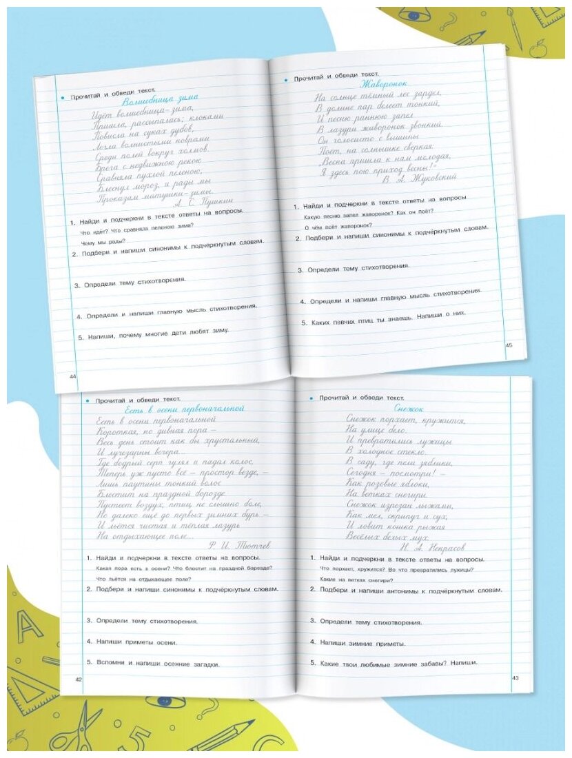 Приобрела как дополнение к школьному материалу. Для улучшения подчерка. Очень понравилось ребёнку. Все легко и подробно. Обводится текст в пол страницы и после даются задания. Задания по работе с текстом. После работы с треножором работа с текстом стала лучше. И почерк начал меняться в лучшую сторону. Очень жалко что всего одна часть.