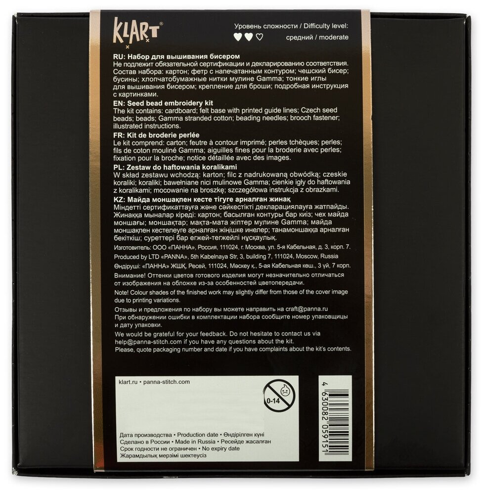 Состав набора | бисер; пайетки; фетр; фетр с напечатанным контуром; заготовка из картона; фурнитура |