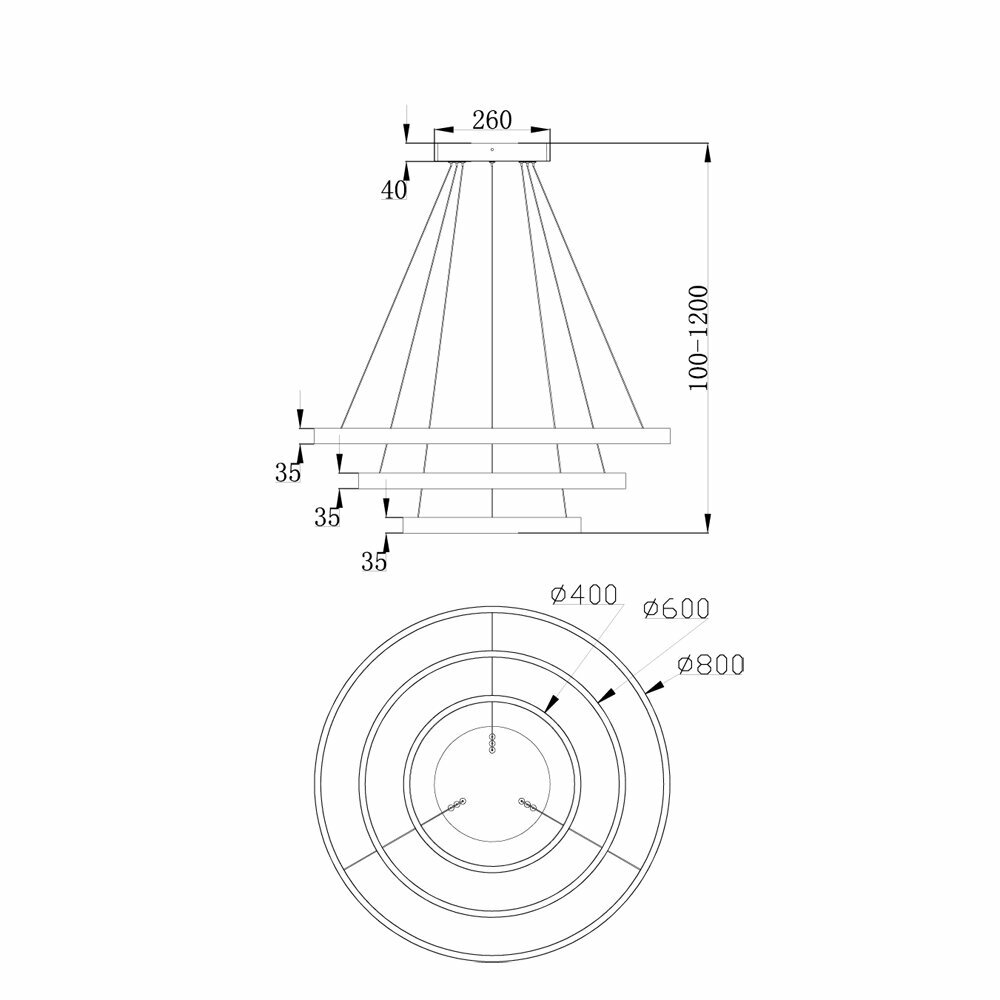 - Диаметр плафона: 400, 600, 800 мм.