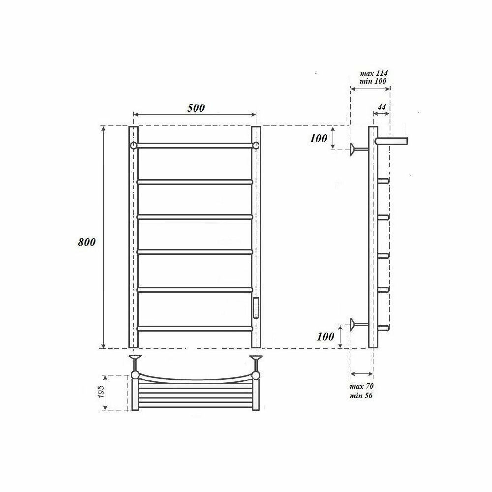 Электрический полотенцесушитель Point PN04858P П5 500x800 с полкой, диммер справа Хром (размер: 80x53 см)