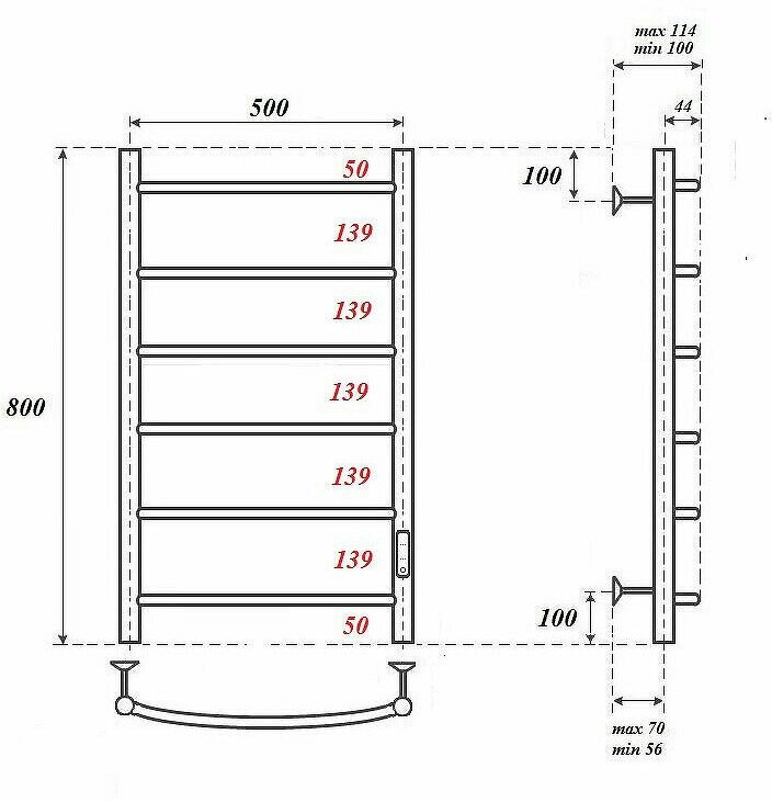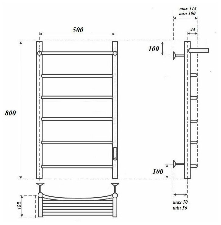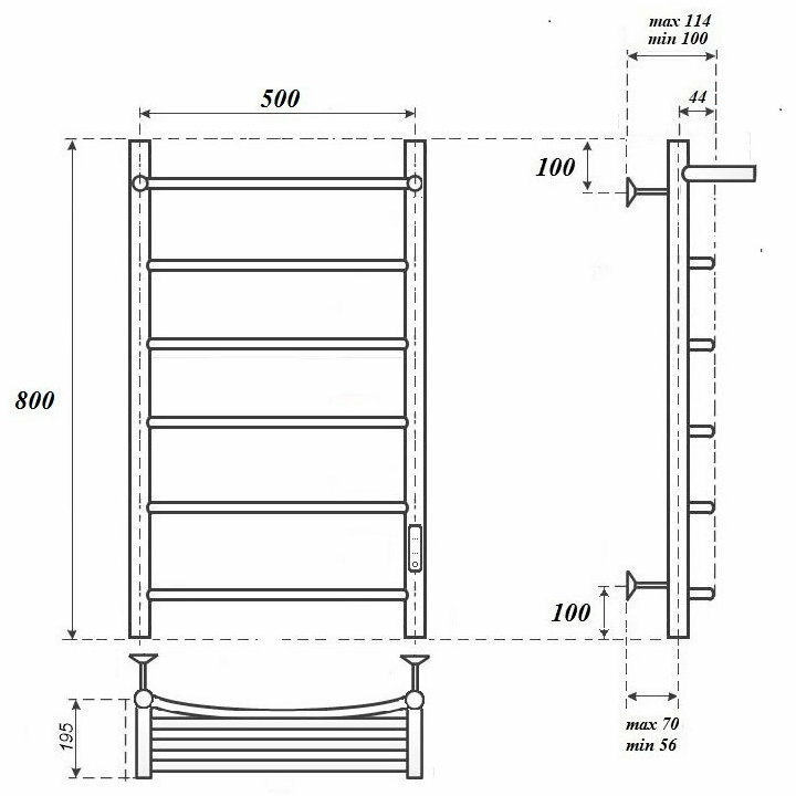 | ВКоробке | Полотенцесушитель - 1 шт. Терморегулятор - 1 шт. Комплект креплений - 1 шт. Электрический кабель - 1 шт. Инструкция - 1 шт. |
