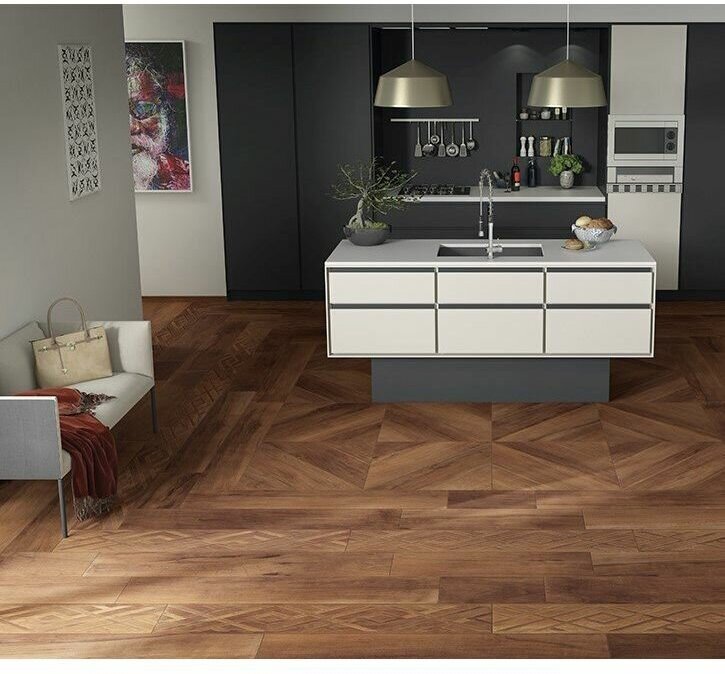 Сочетает в себе традиционно достойное качество, красоту, долговечность, дизайнерский метод в проектировании образцов керамики. Керамогранит в форме паркетной доски подойдет для пола в ванную, гостиную, кухню, коридора.
