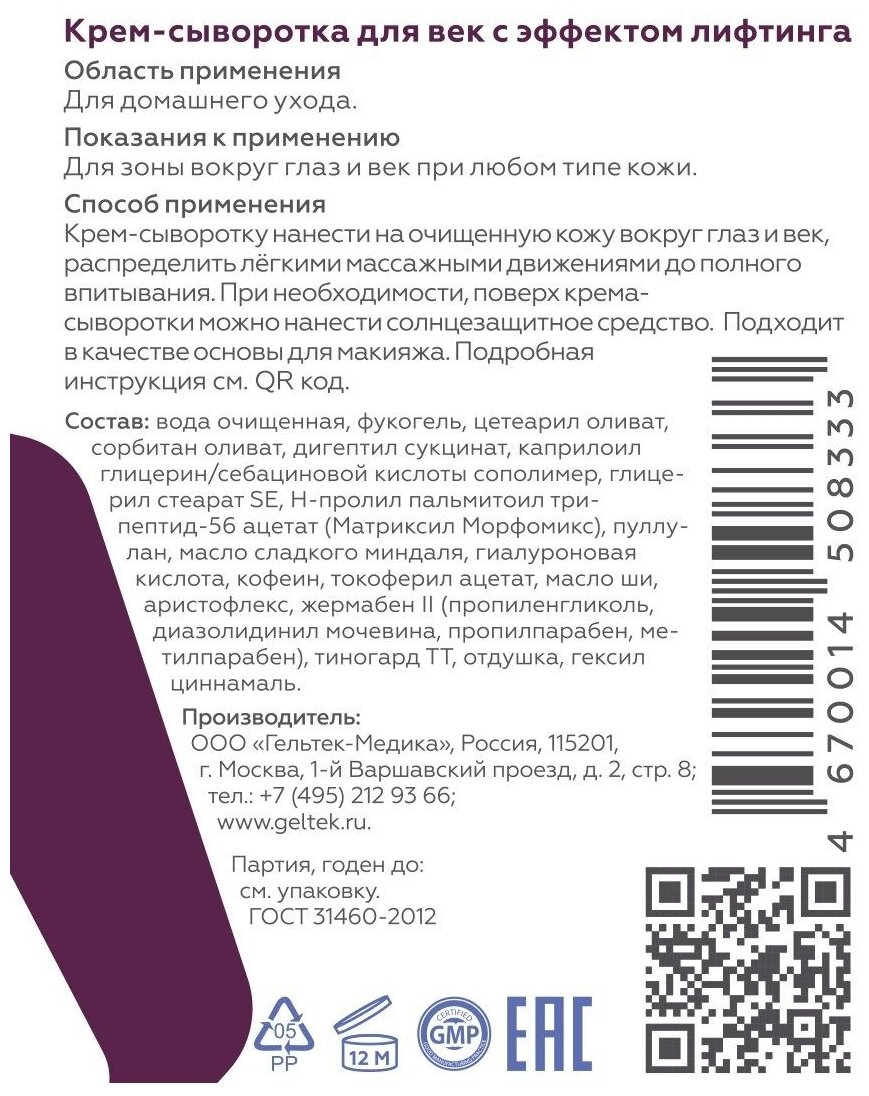 Гельтек Крем-сыворотка для век с эффектом лифтинга 30 мл (Гельтек ) (Gel08333)
