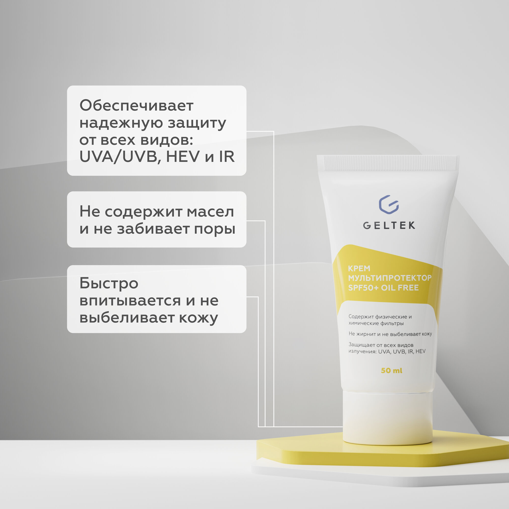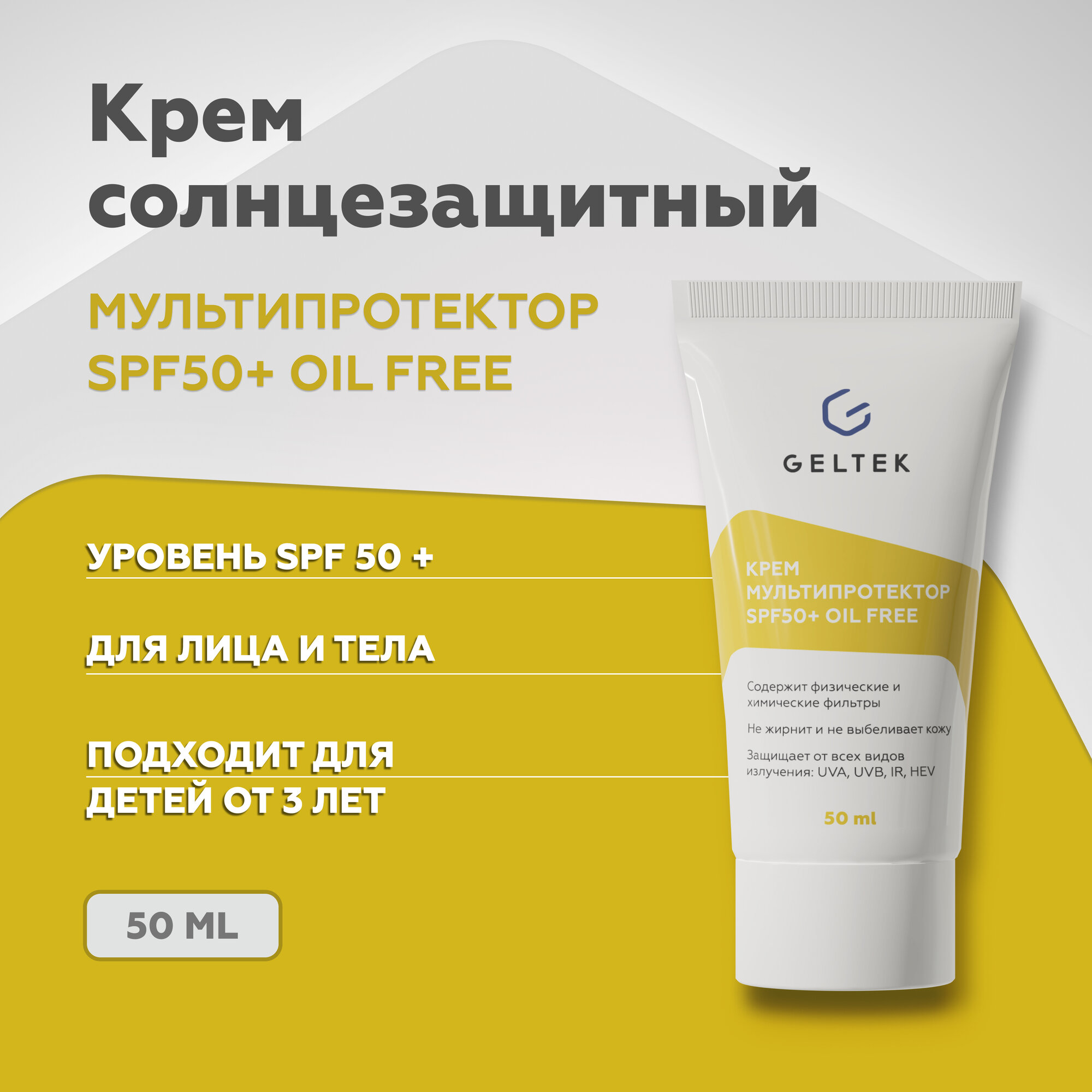 Гельтек Крем мультипротектор SPF 50+ Oil Free 100 мл (Гельтек ) (Gel08012)