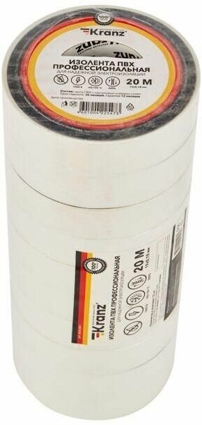 Профессиональная изоляционная лента KRANZ класса PREMIUM используется для электрической изоляции, цветной маркировки, соединения, защиты от внешних факторов и герметизации кабелей, проводов и шнуров. Находит широкое применение не только у профессионалов, но и в быту.