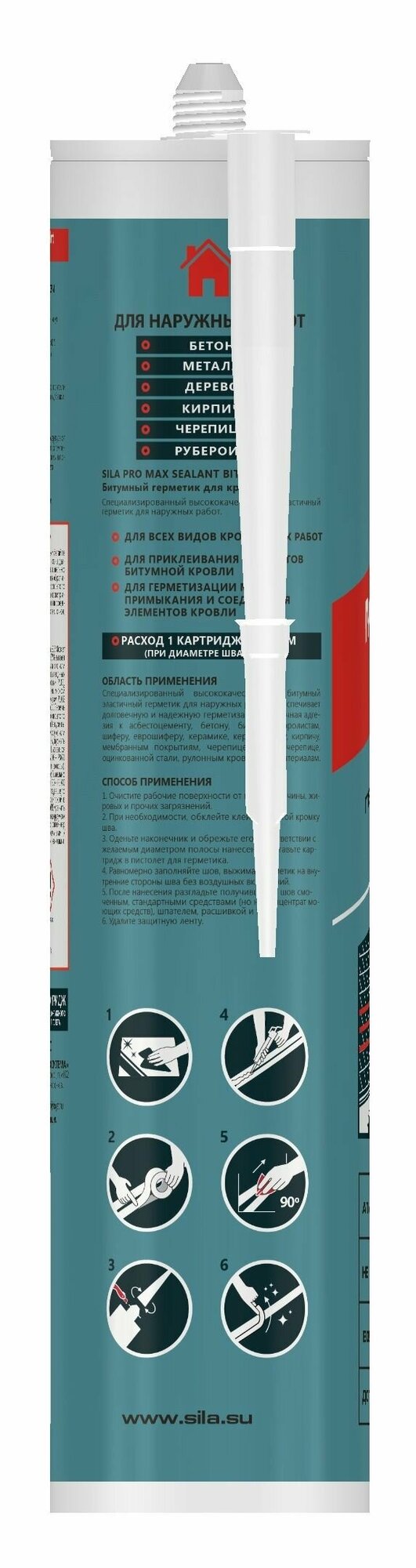 Sila PRO Max Sealant Bitum был разработан для защиты стыков от атмосферных воздействий и для уплотнения вокруг труб. А так же для приклеивания черепицы, для проведения аварийных ремонтов крыш, водостоков, дымоходов и т.д.