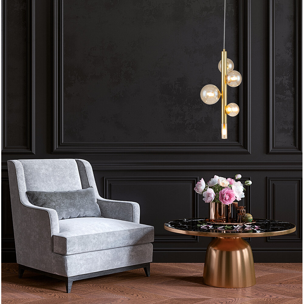 Подвесной светильник Canto (11026/5P Gold ) - продукт известной компании Indigo (Англия). Имеет максимальную мощность 140 Вт, освещает площадь до 9 кв. м. Отлично подойдет для таких мест, как гостиная, кафе, спальня, кухня, детская. Впишется в интерьеры следующих стилей: хай-тек.